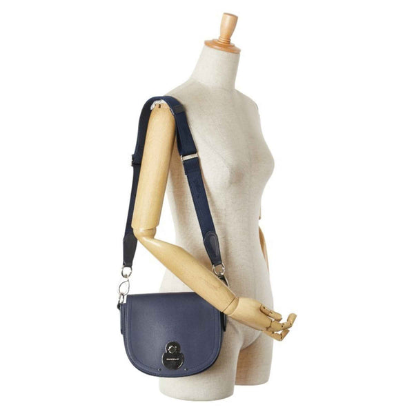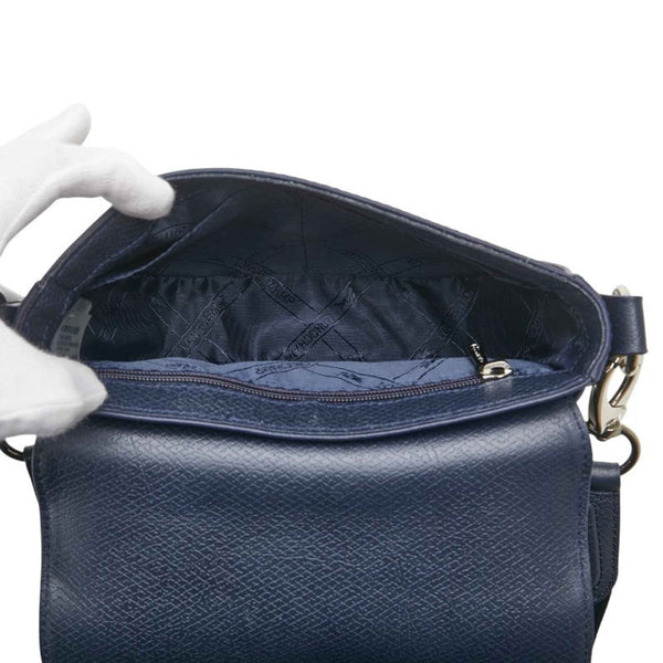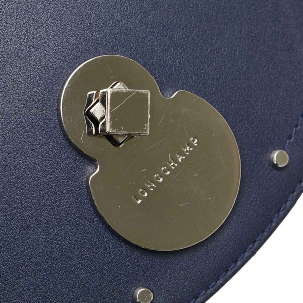 Longchamp Shoulder Bag Navy Silver Leather Women\'s
