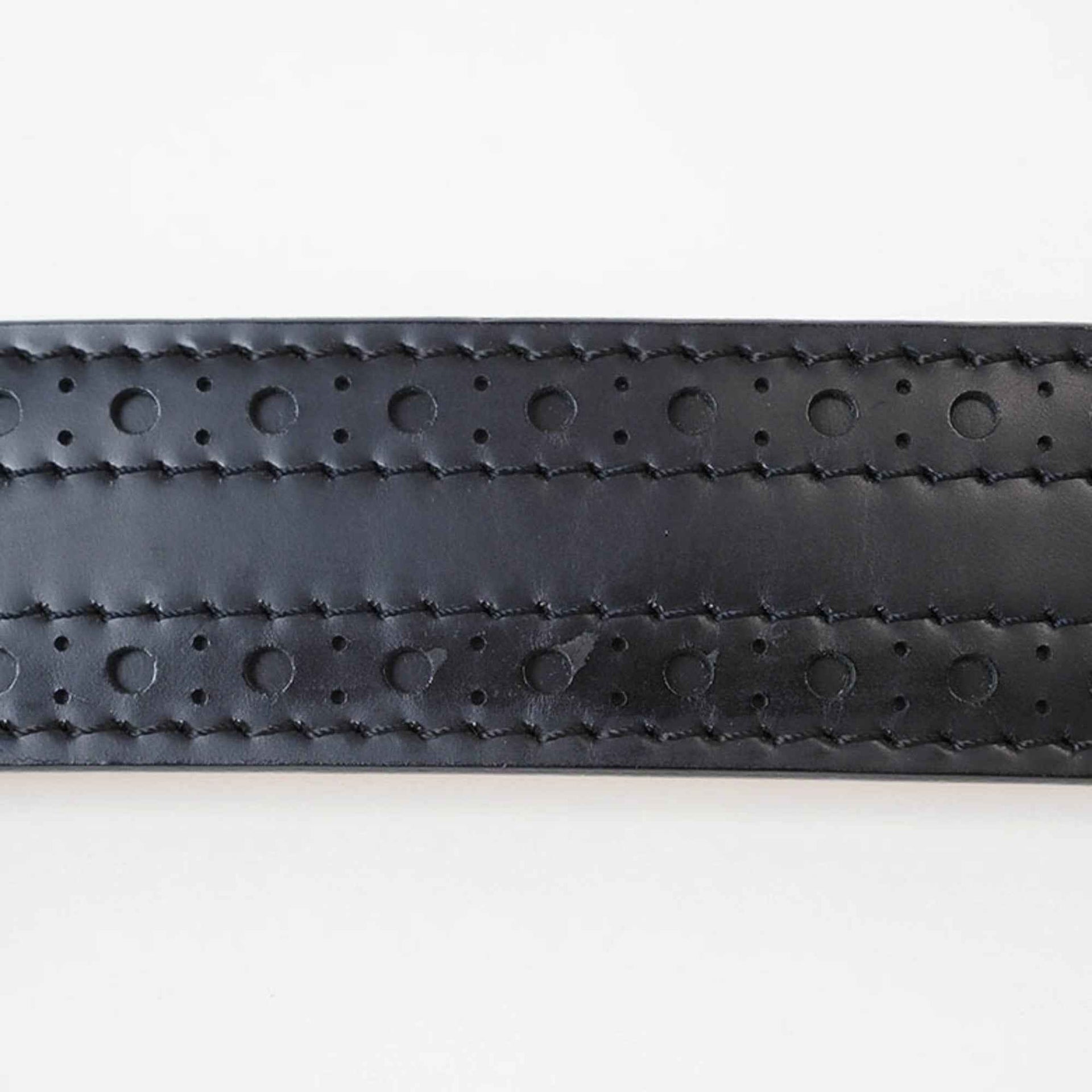 Louis Vuitton Riem Santur 95cm Zwart Heren Leer Opengewerkt Zilveren Gesp LOUIS VUITTON