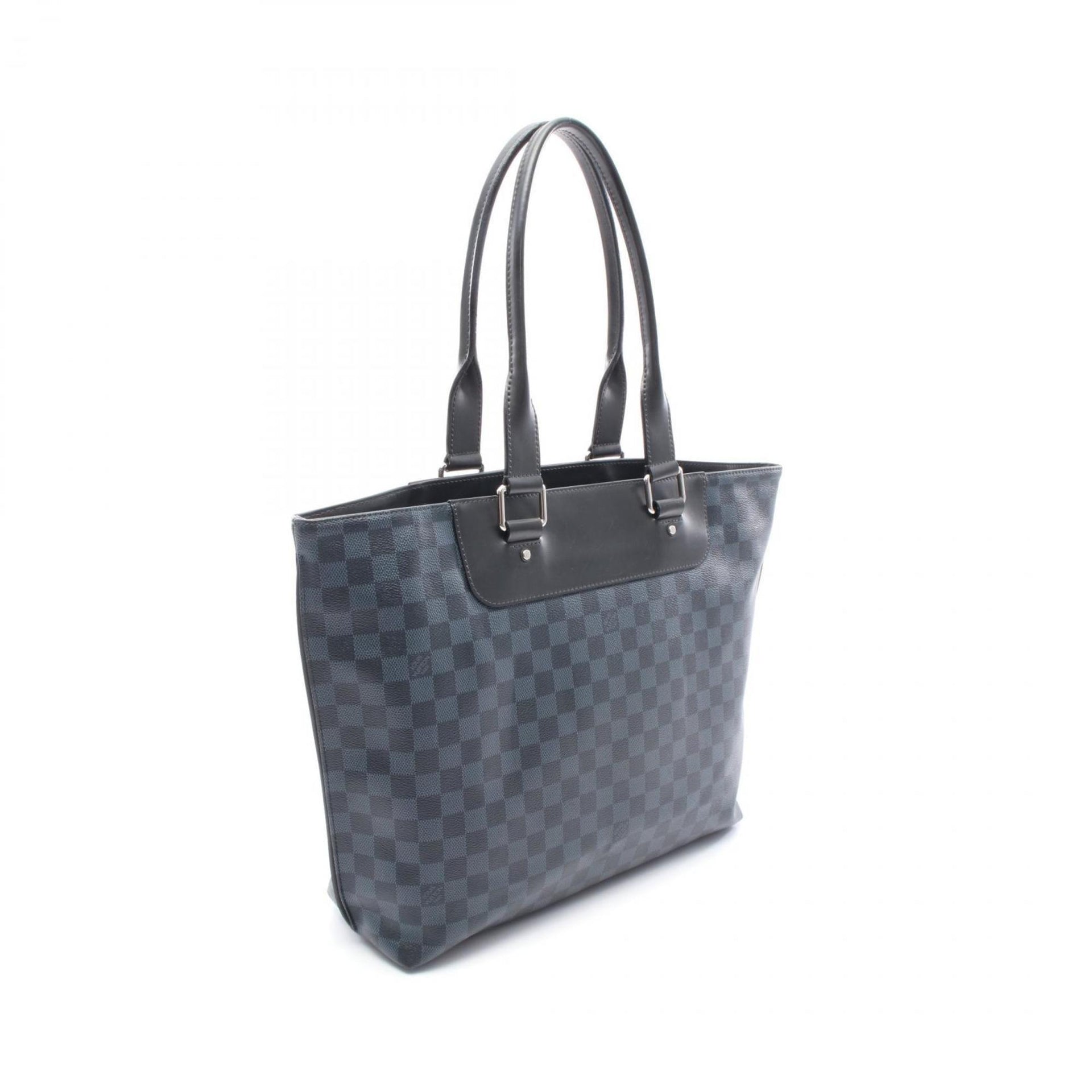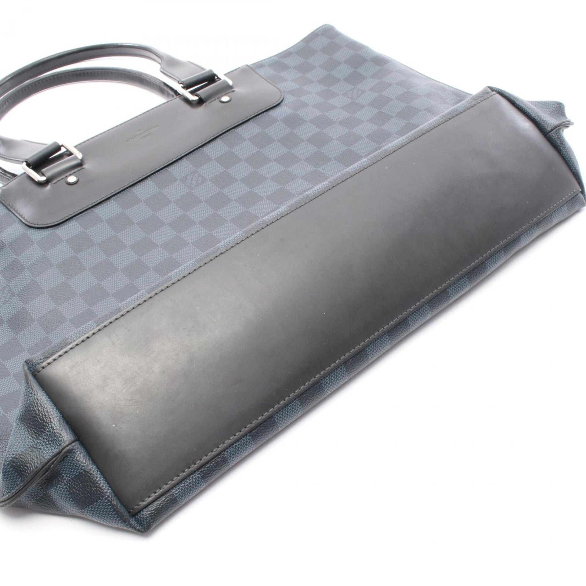 LOUIS VUITTON Cabas Voyage Damier Cobalt Tote Bag Coated Canvas Leather Men\'s Navy Black N41397