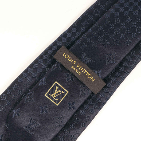 LOUIS VUITTON Cravate Mix Monogram Silk Tie in Navy Blue for Men, K4613
