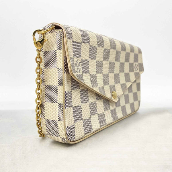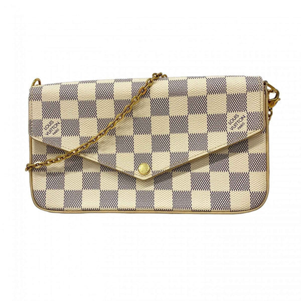 Louis Vuitton Damier Azur Pochette Felicie Shoulder Wallet N63106 White Rose Ballerine for Women