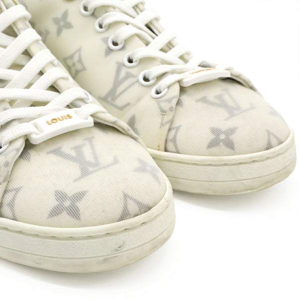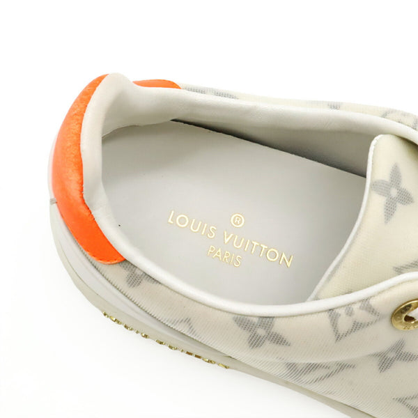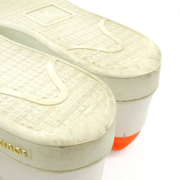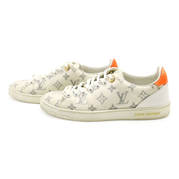 LOUIS VUITTON Front Row Line Sneakers, Monogram Fabric, White and Orange, #37 1/2, Japanese Size: Approx. 24cm