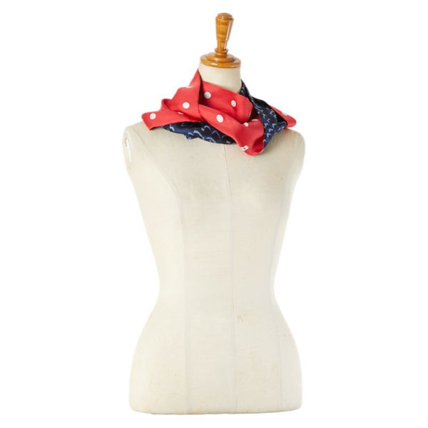 Louis Vuitton Leopard Dot Scarf Muffler Snood M74607 Red Navy Silk Women\'s LOUIS VUITTON