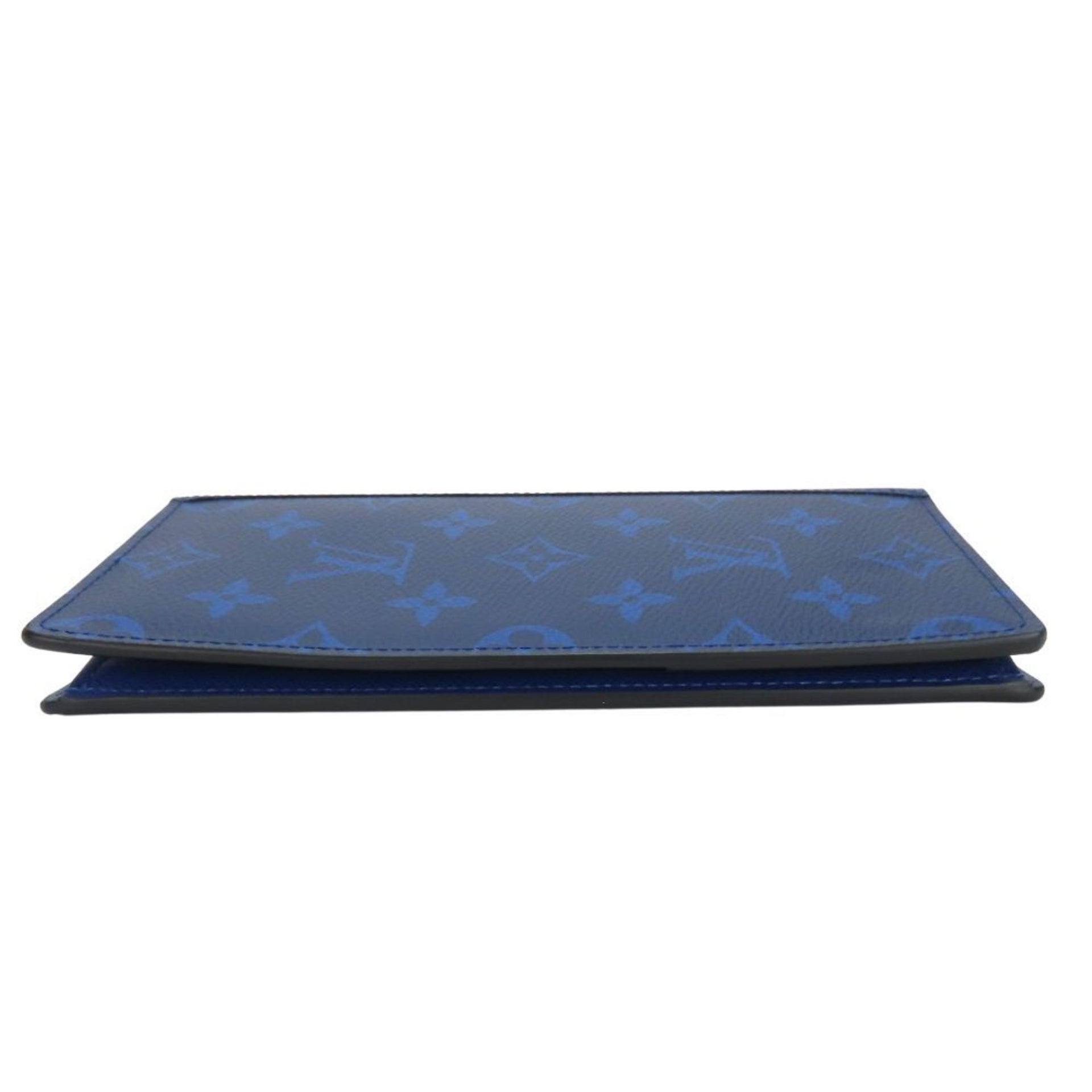 Louis Vuitton Long Wallet Portefeuille Brazza M30297 Taiga Rama Monogram Cobalt Blue Bi-fold Coin Purse Men\'s LOUIS VUITTON