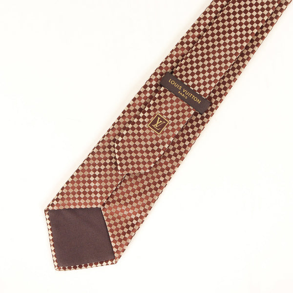 LOUIS VUITTON Louis Vuitton Micro Damier Silk Cravate Tie Brown Men\'s K4615