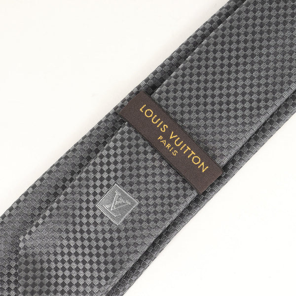 LOUIS VUITTON Louis Vuitton Micro Damier Silk Cravate Tie M75639 Silver Men\'s K4617