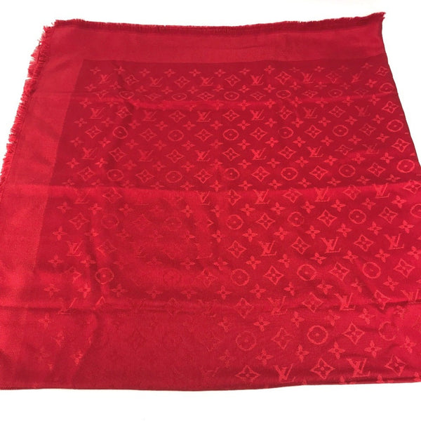 LOUIS VUITTON Louis Vuitton Monogram Stole Scarf Fringe Shawl Wool Silk Women\'s Red