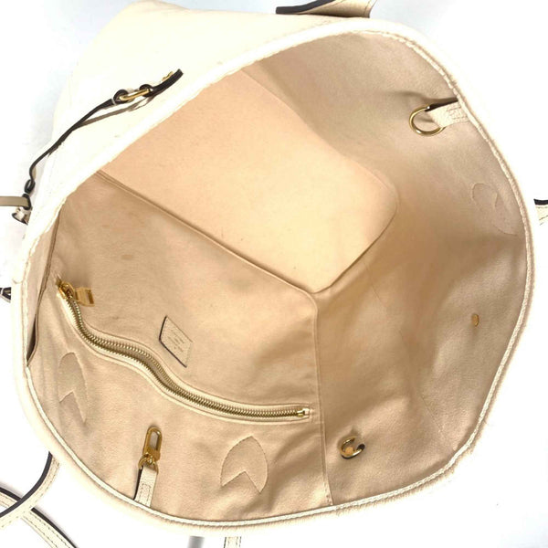 LOUIS VUITTON M46676 Monogram Empreinte Neverfull MM Shoulder Bag/Tote Bag in Leather, Women\'s, Crème Beige