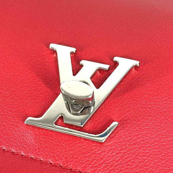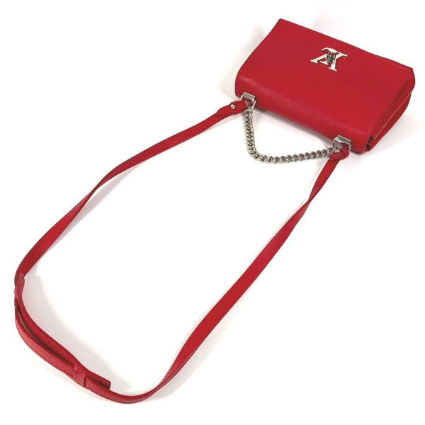 LOUIS VUITTON M51202 Lockme 2 BB 2-Way Bag, Chain Shoulder Handbag, Calfskin Leather, Women\'s, Ruby Red