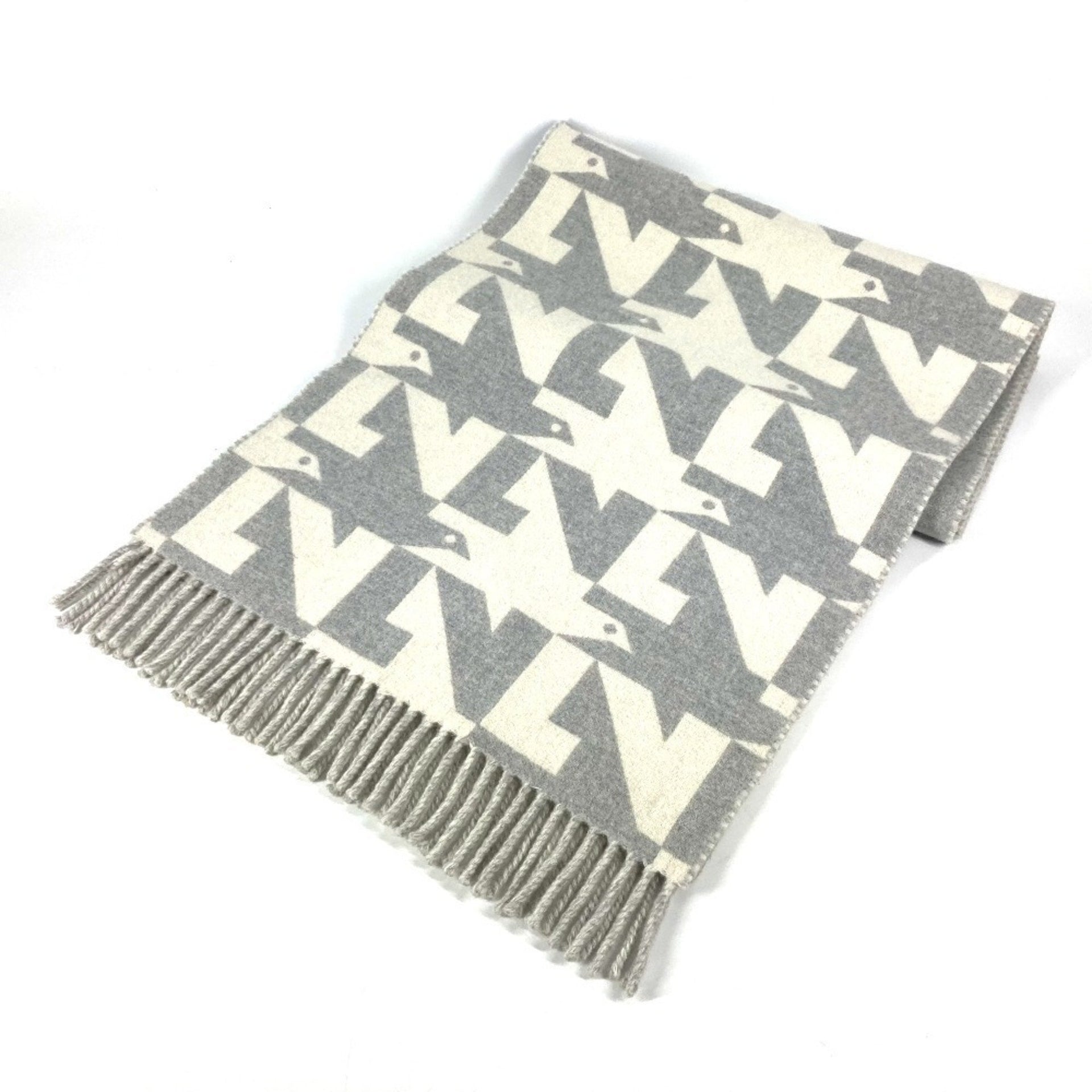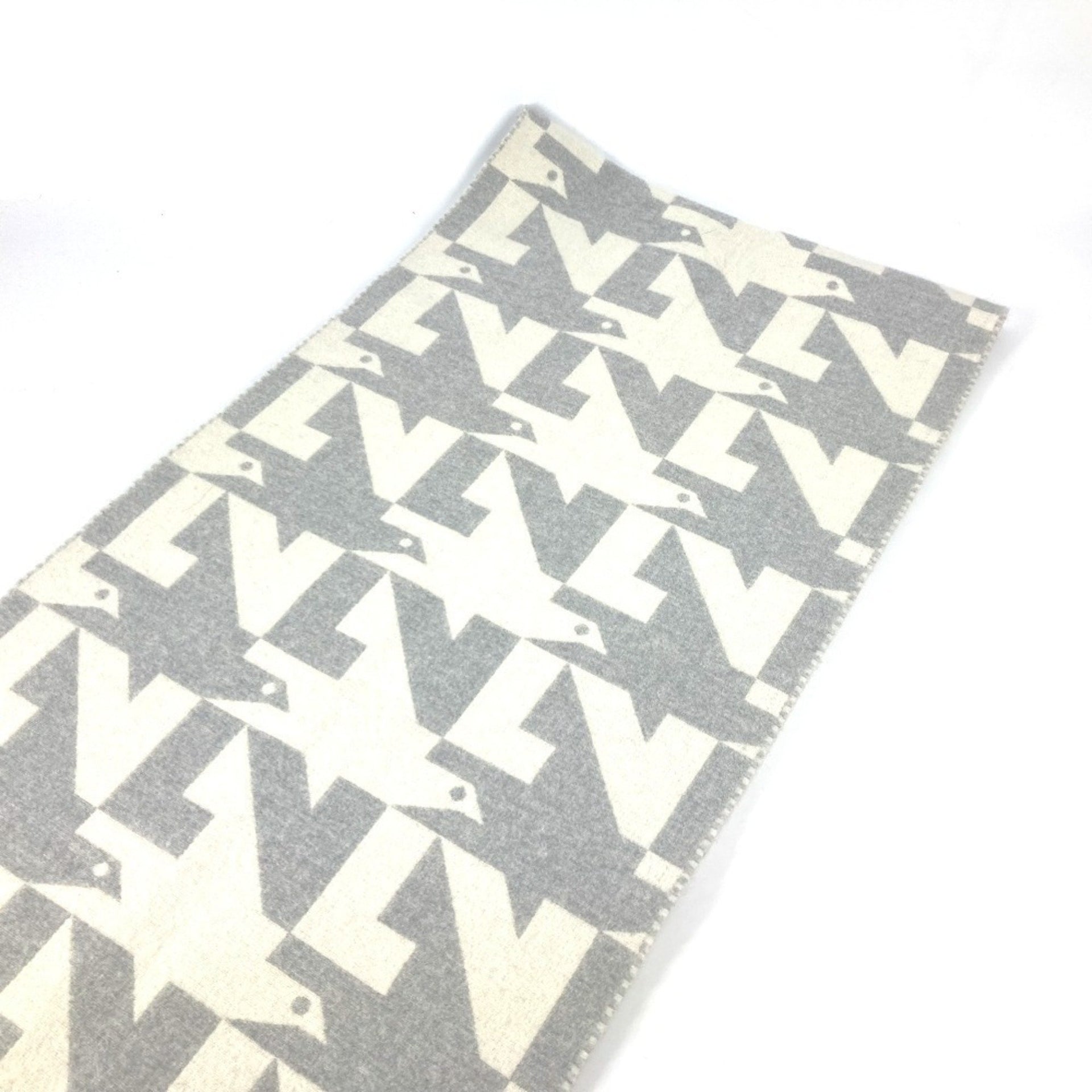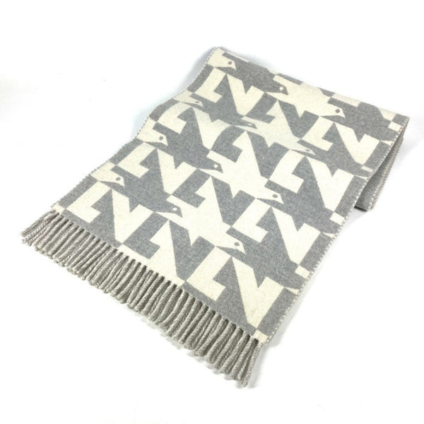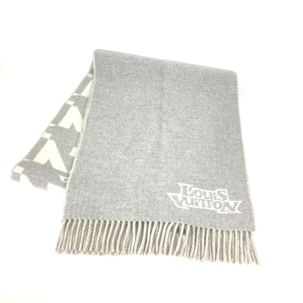 LOUIS VUITTON M78004 Fringe Scarf LV Dove Logo Wool Cashmere Men\'s Women\'s Grey
