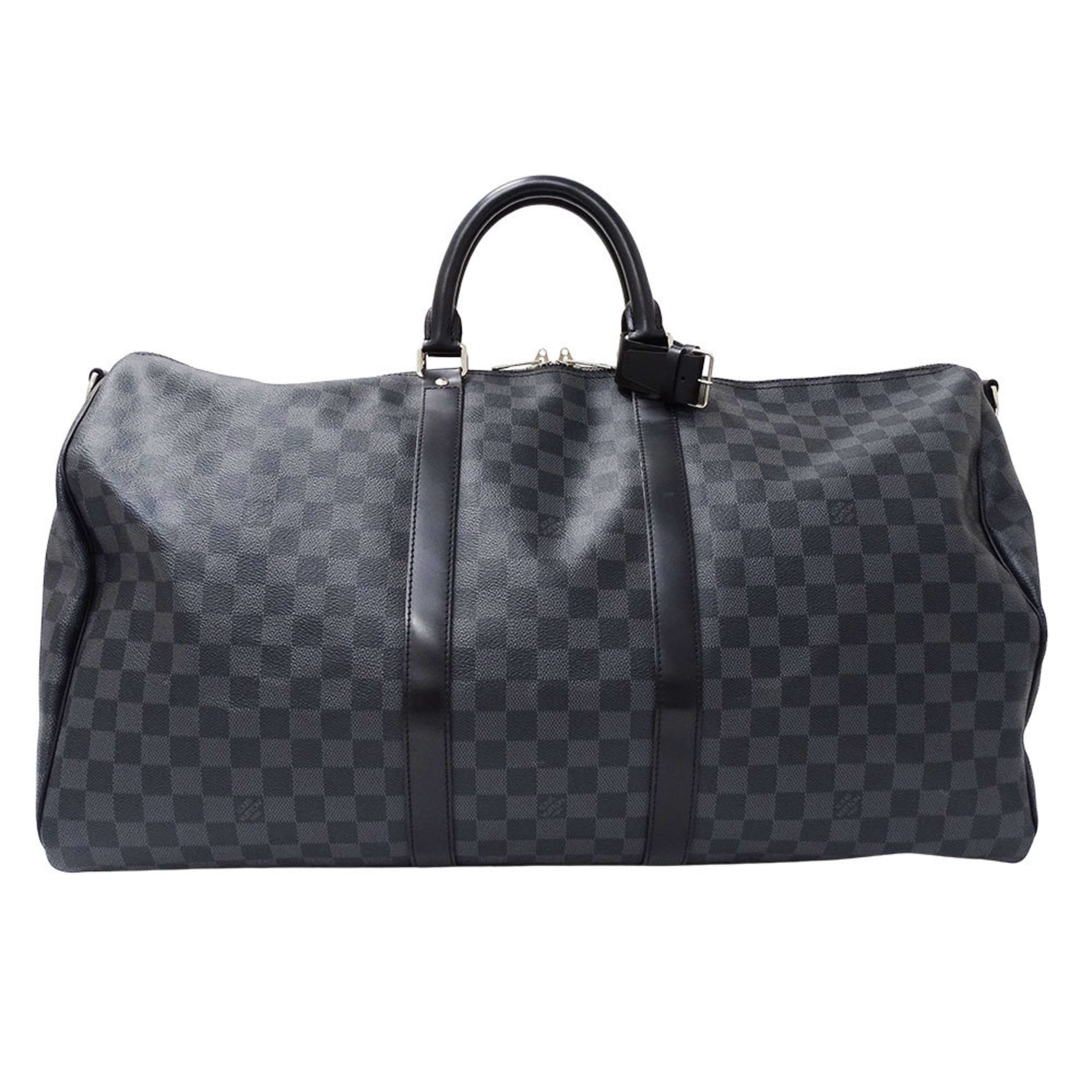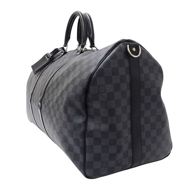 Louis Vuitton Men\'s Keepall Bandouliere 55 Boston Bag in Damier Graphite Canvas, Black, N41413, Large Capacity, Travel