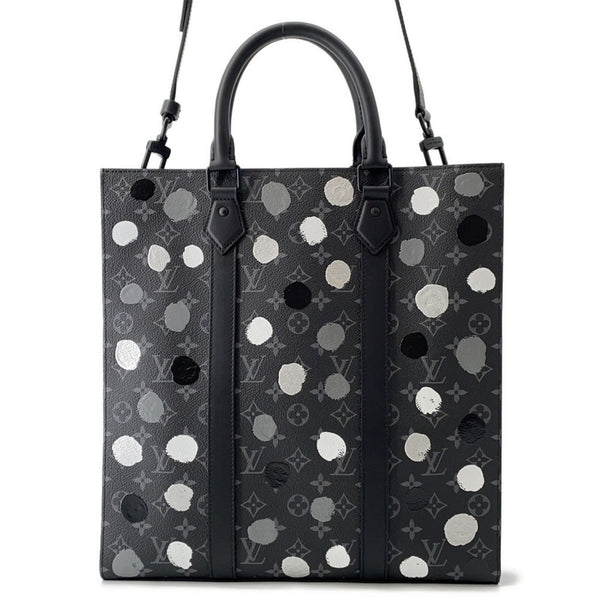 Louis Vuitton Monogram Eclipse Handbag with Painted Dots, LV x YK Sac Plat M46404, Yayoi Kusama, Black
