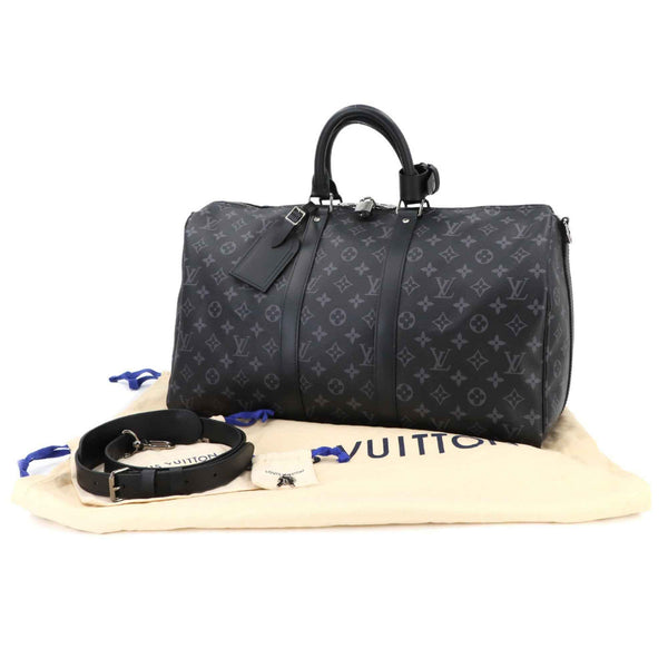 Louis Vuitton Monogram Eclipse Keepall Bandouliere 45 2-way Boston Shoulder Bag, Black, M40569, RFID