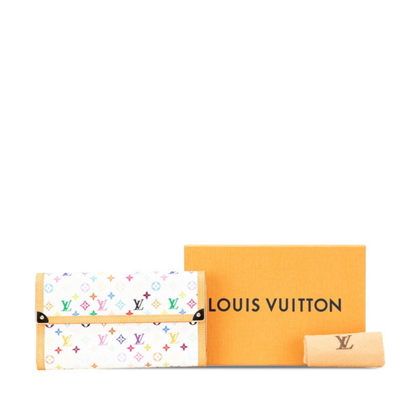 Louis Vuitton Monogram Multicolore Porte Tresor International Long Wallet M92659 White Blanc Leather Women\'s LOUIS VUITTON