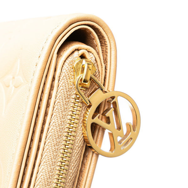 Louis Vuitton Monogram Portefeuille Lou Embossed Bi-fold Wallet M81673 Brown Camel Lamb Leather Women\'s LOUIS VUITTON