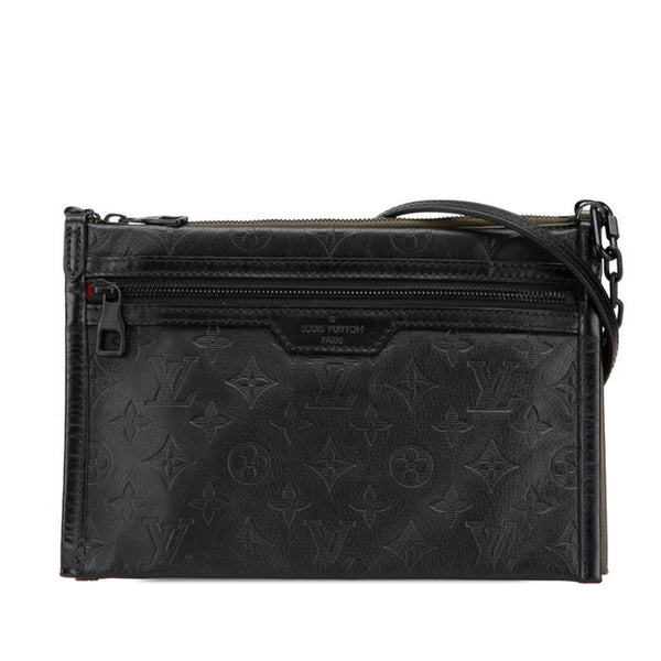 Louis Vuitton Monogram Shadow Flat Messenger Pouch Clutch/Shoulder Bag M44635 Black/Khaki Leather Men\'s LOUIS VUITTON