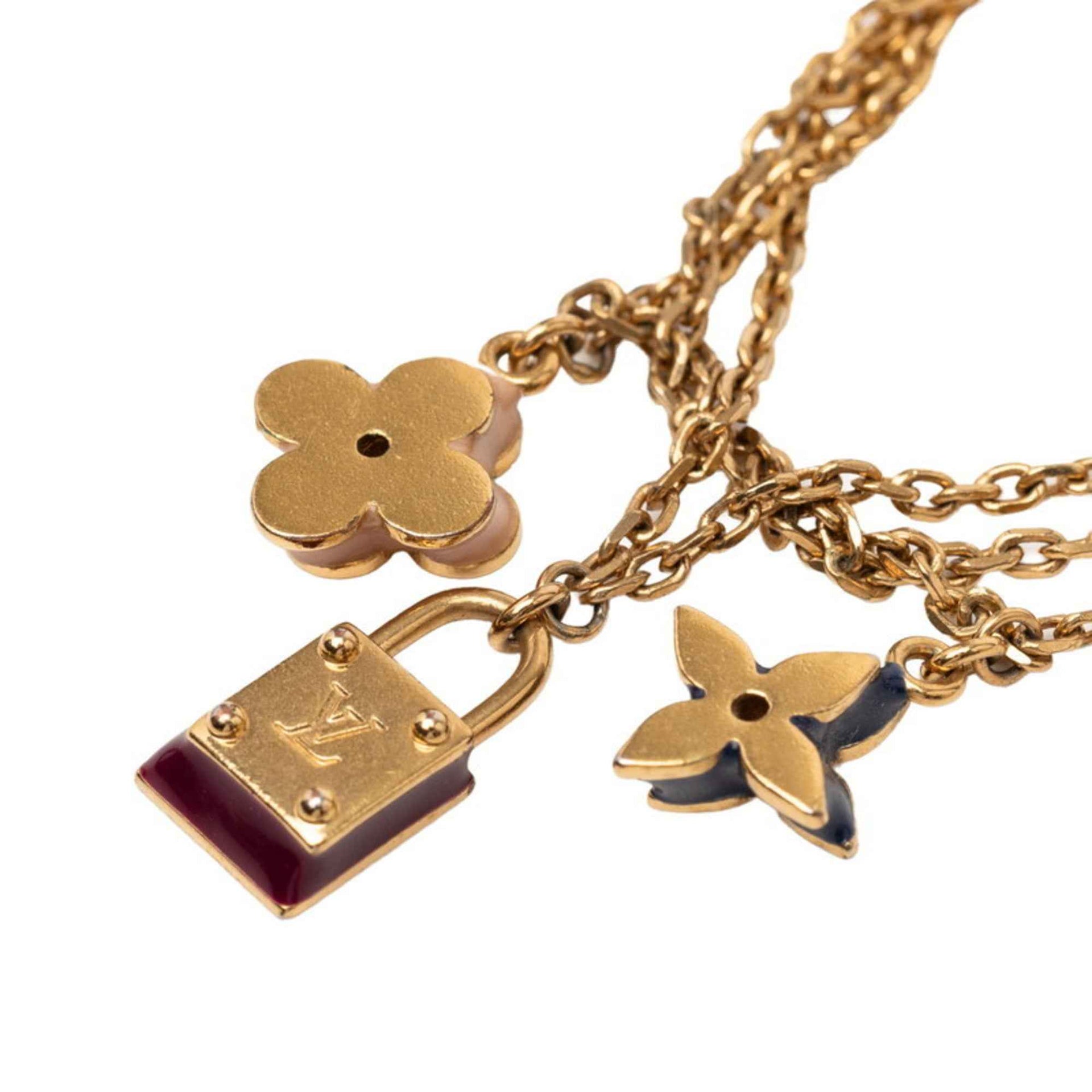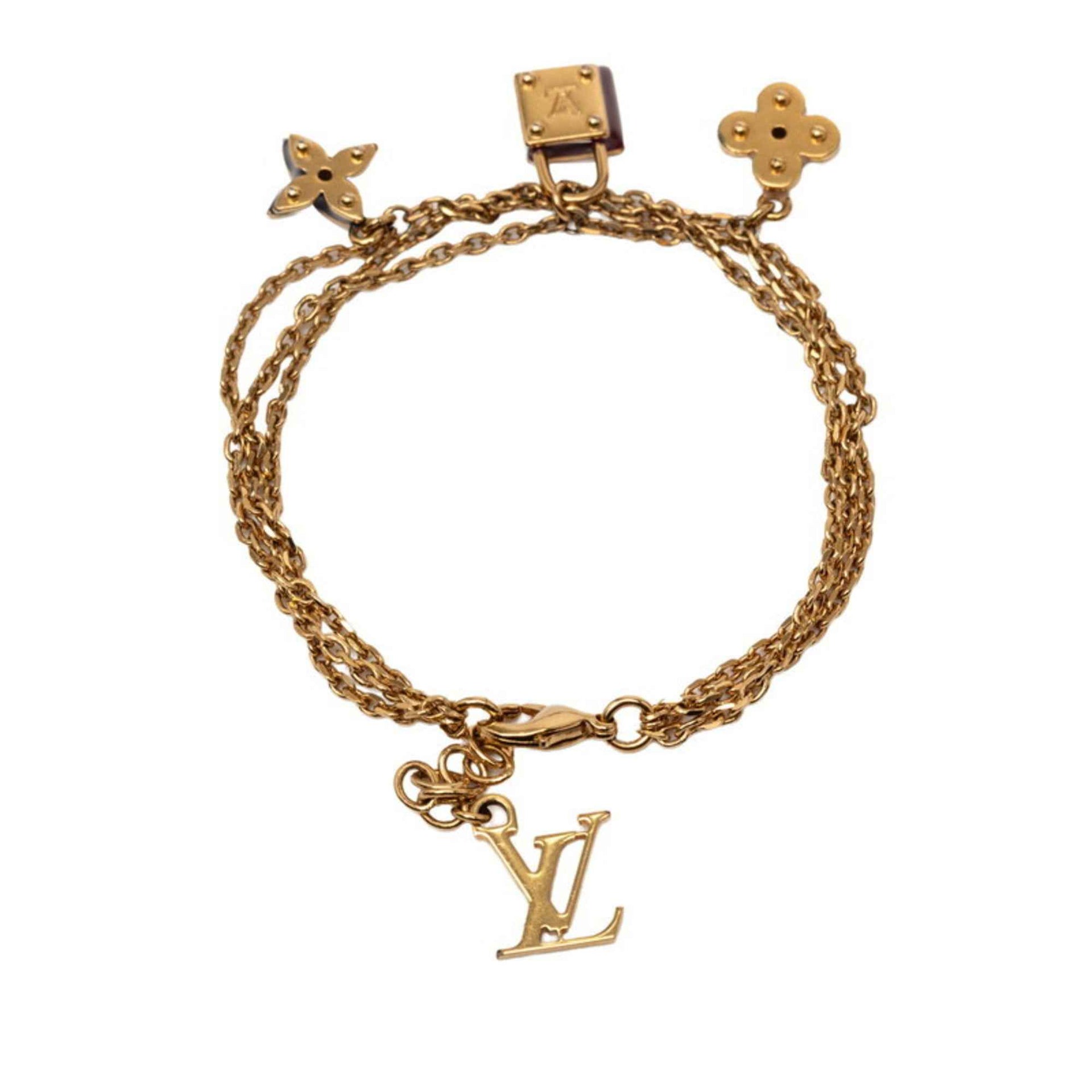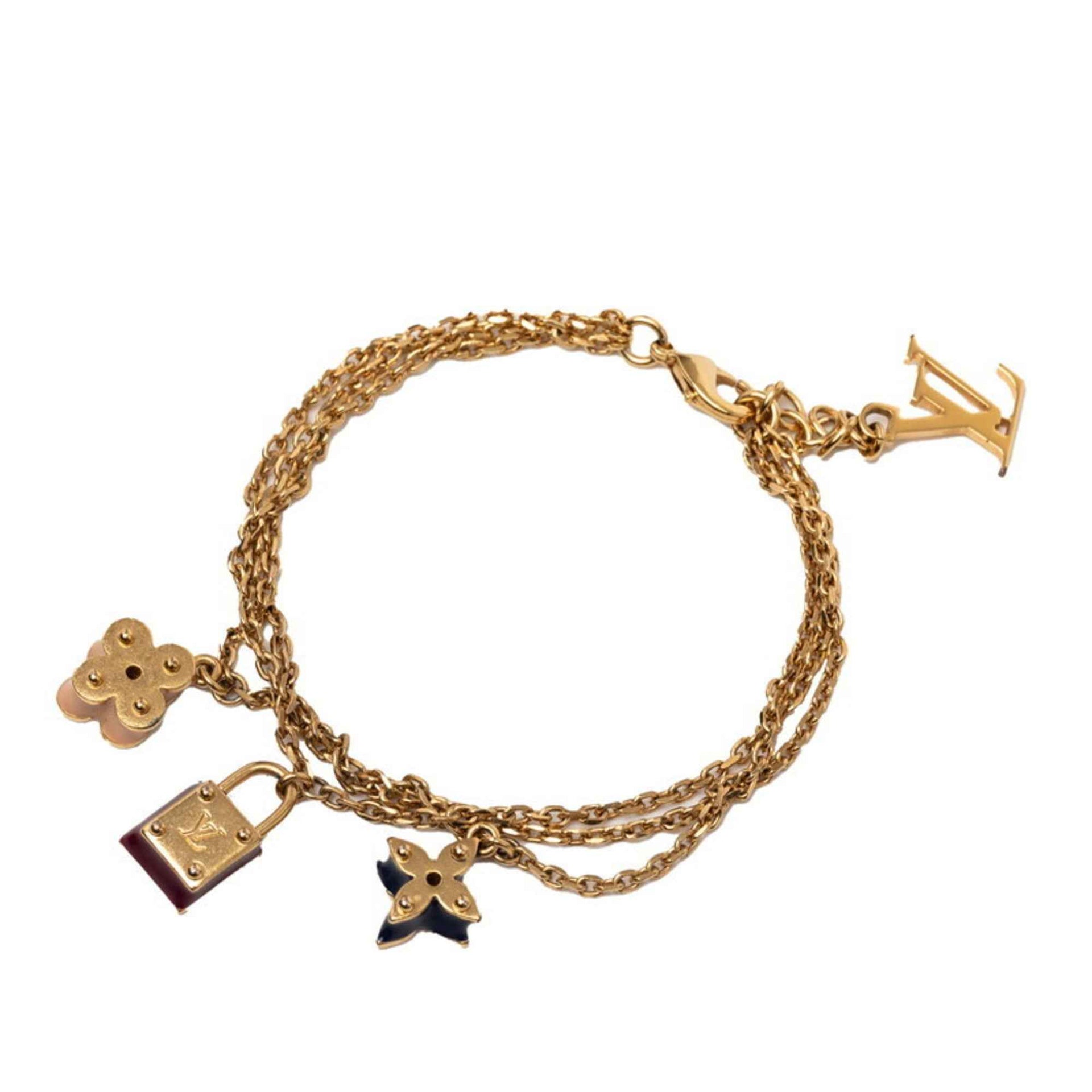 Louis Vuitton Monogram Sweet Charm Chain Bracelet M66248, Bordeaux Blue, Pink Gold Plated, Women\'s