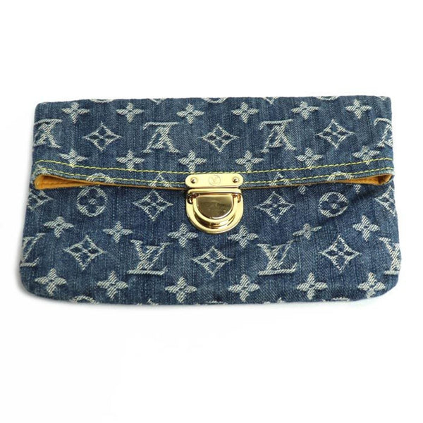 LOUIS VUITTON Pochette Plat Clutch Bag in Monogram Denim, Blue, M95007, Women\'s