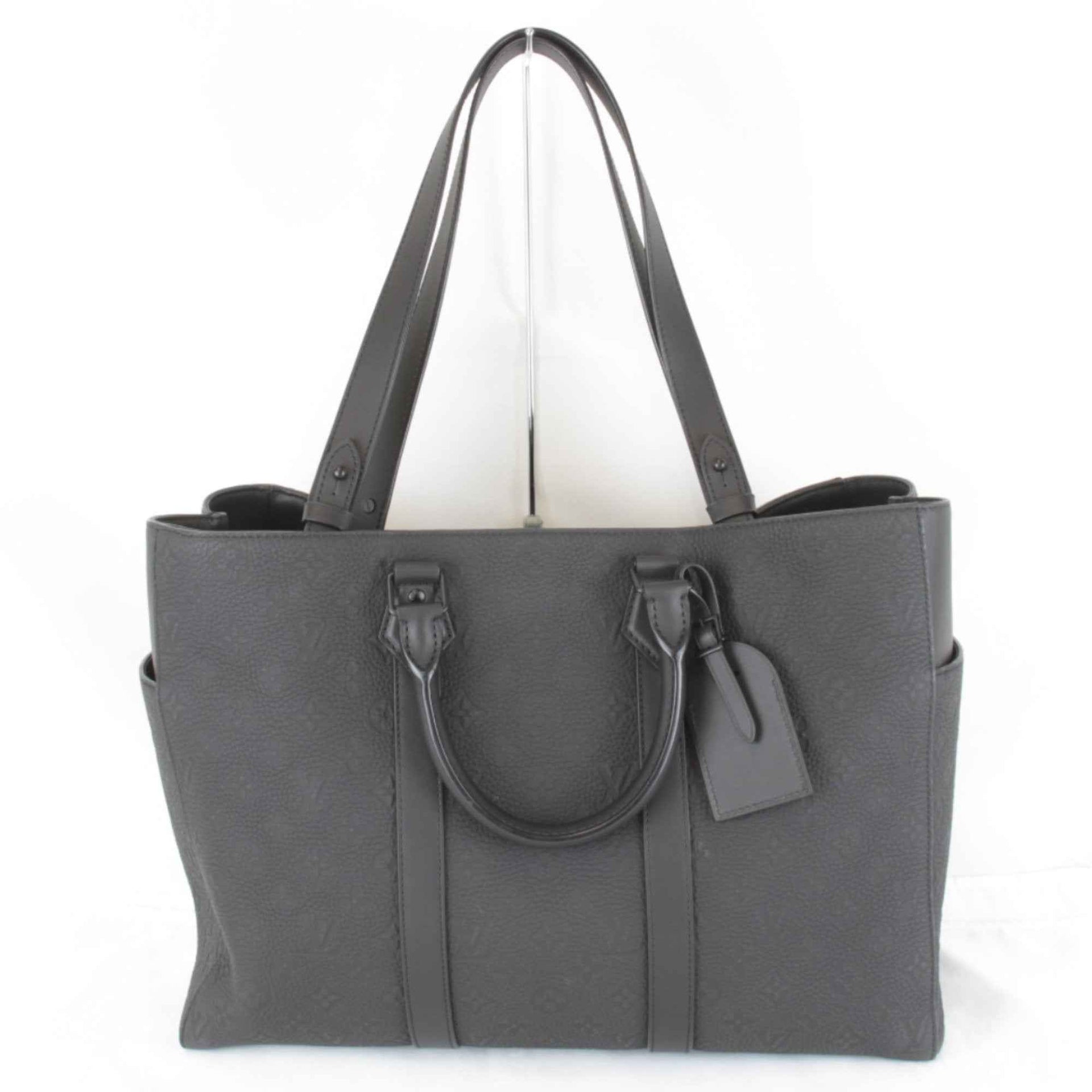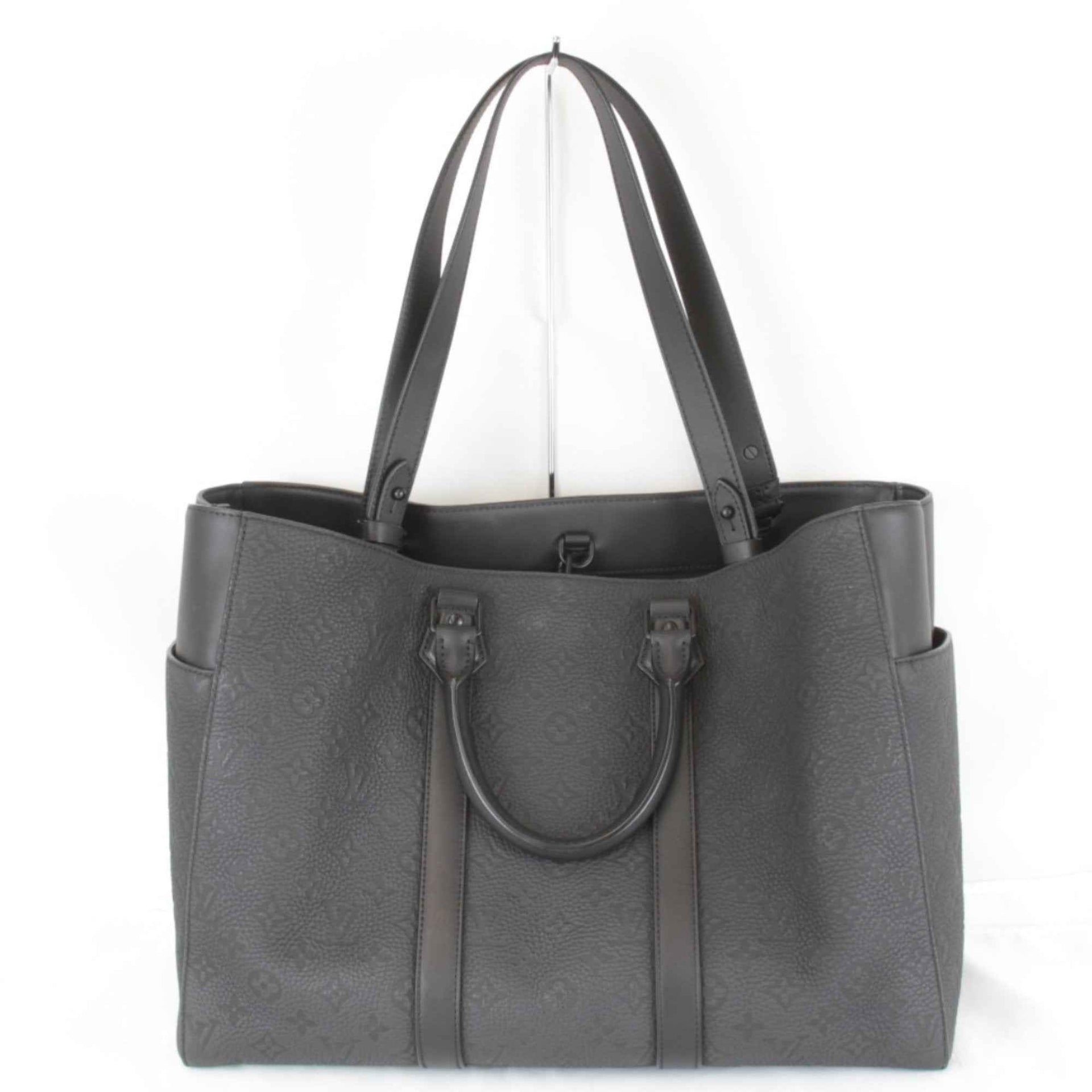 LOUIS VUITTON Sac Plat 24H M21865 Tote Bag, Taurillon Monogram, Black, Men\'s, Soft Material