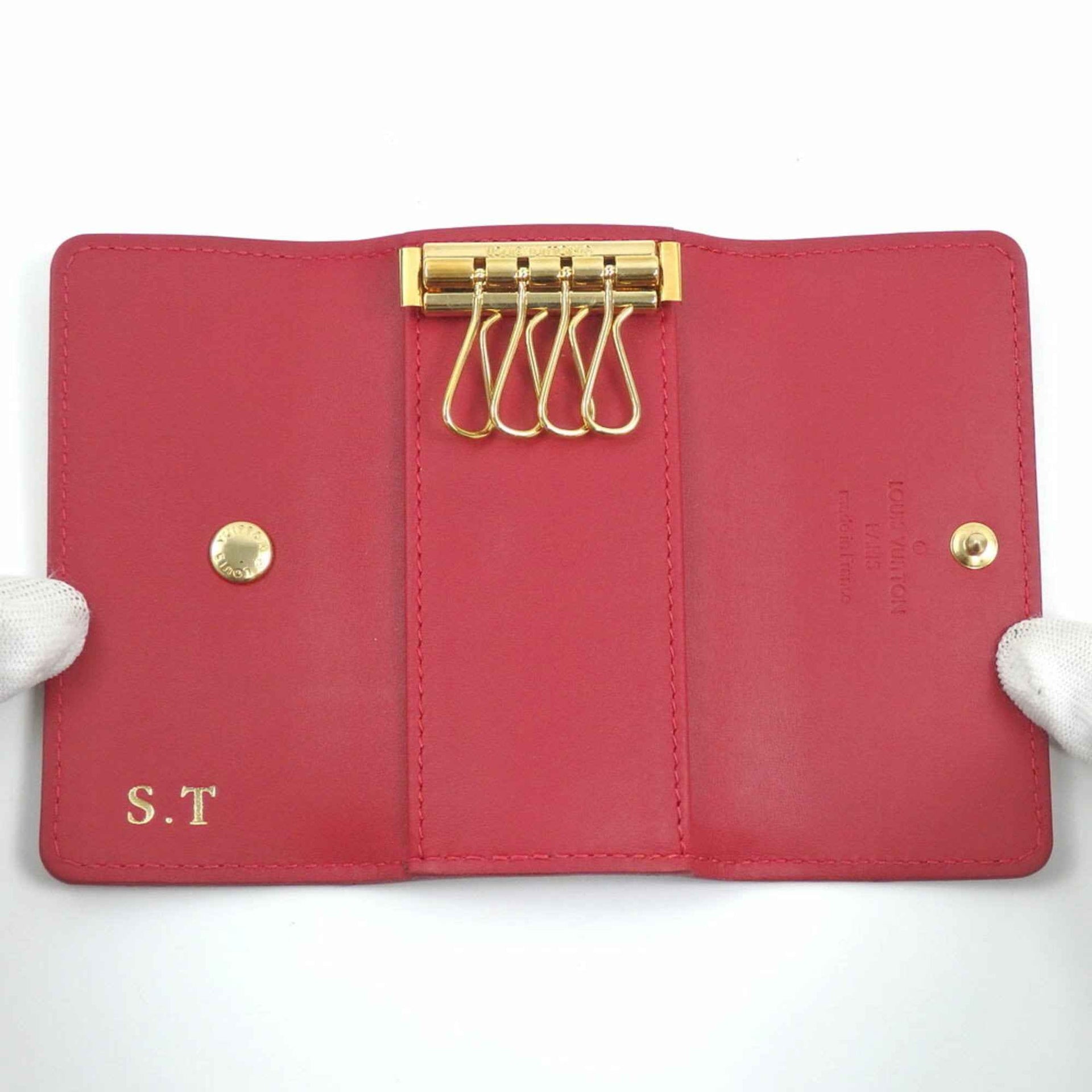 Louis Vuitton Vernis Multicle 4 Key Case, Women\'s, M91976, Pomme d\'Amour with Initials
