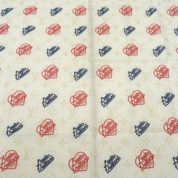 Louis Vuitton Virgil Abloh and Nigo Collaboration Handkerchief Bandana Heart Print Cotton Silk LV 0804LOUIS VUITTON