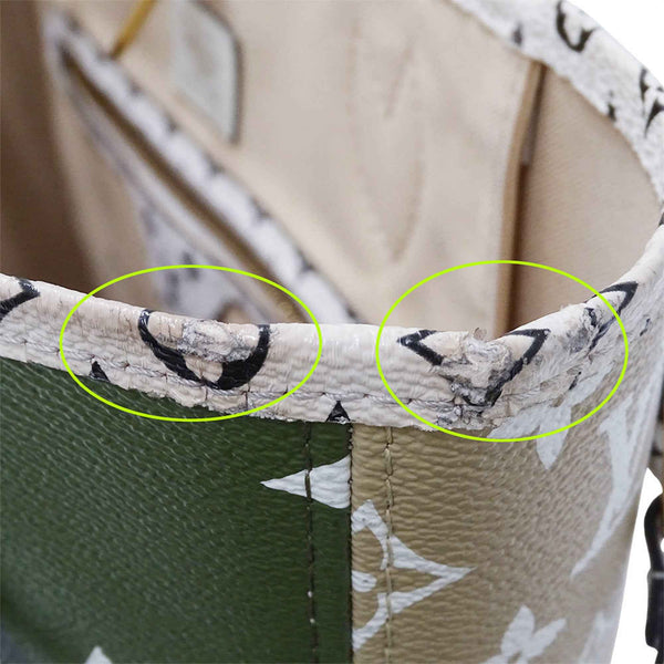 Louis Vuitton Women\'s Monogram Giant Canvas Neverfull MM Tote Bag, Khaki Green and Beige, M44568, Logo, Two-Tone, with Pouch