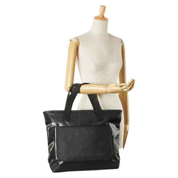 Marc Jacobs logo tote bag, handbag, black leather, women\'s, MARC JACOBS