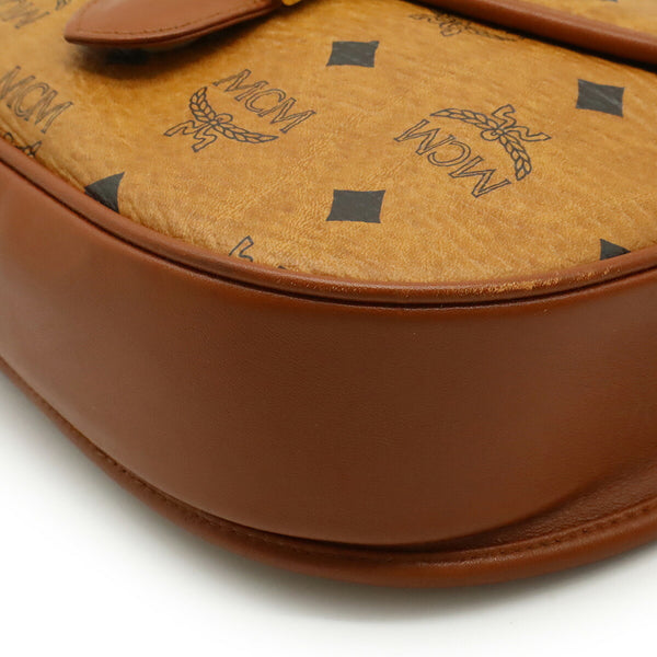 MCM Visetos Glam Shoulder Bag Pochette PVC Leather Cognac Brown