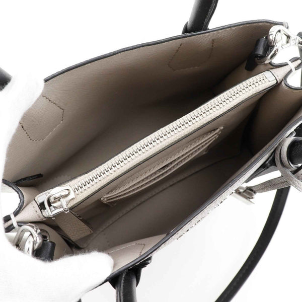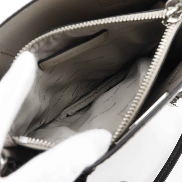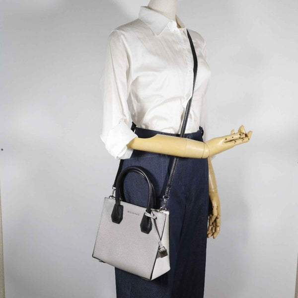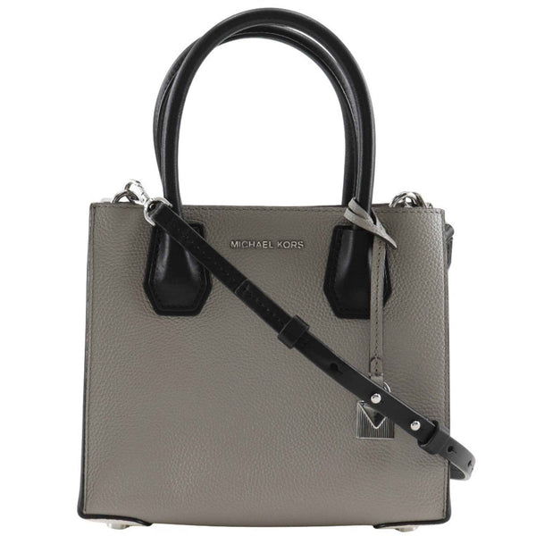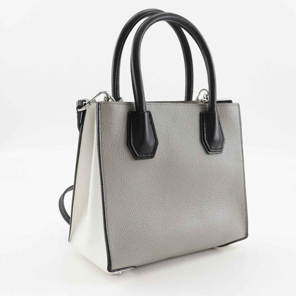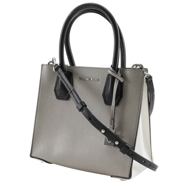 Michael Kors Mercer handbag, two-tone leather shoulder bag in gray/white, 2-way, for women.