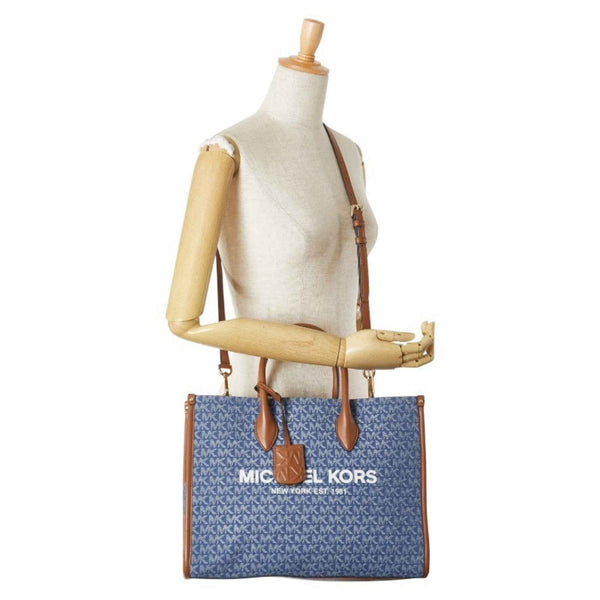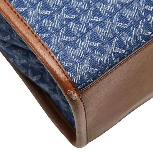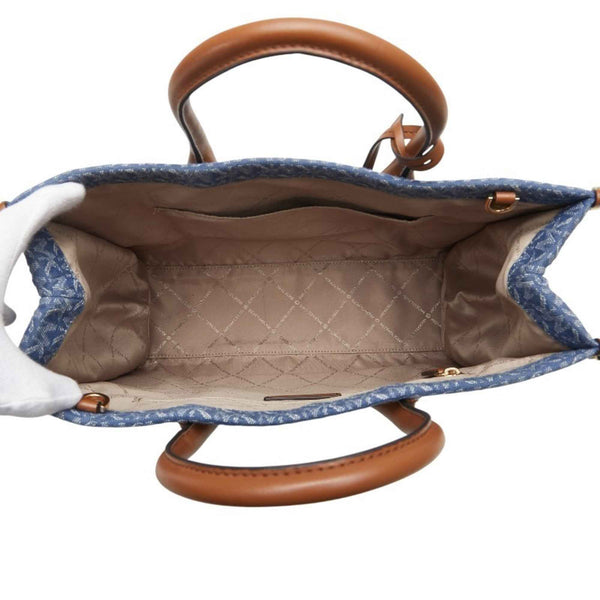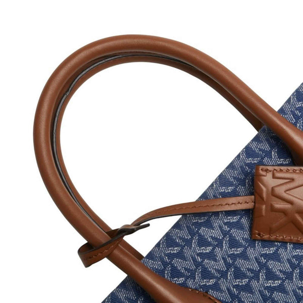 Michael Kors MK Signature Tote Bag/Shoulder Bag, 2-Way, Blue/Brown Canvas and Leather, Women\'s