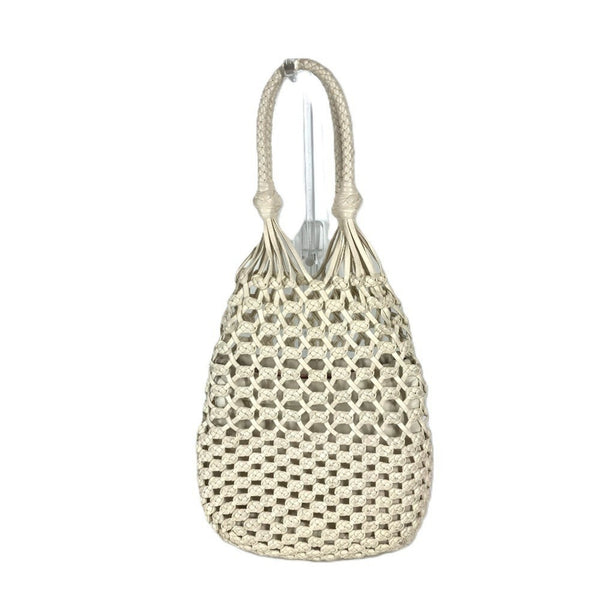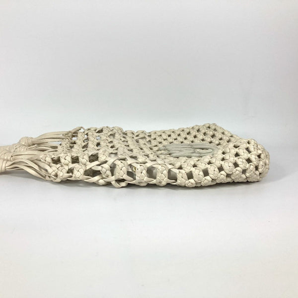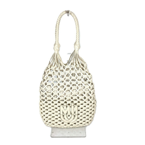 MIU Miu Logo Mesh Shoulder Bag Beach Leather Women\'s White