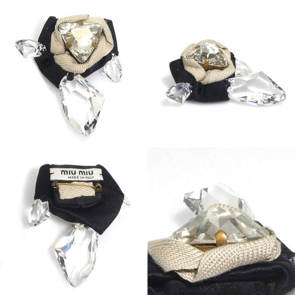 Miu Miu Miu 2-piece brooch set in satin and bejeweled black beige for women h31202a