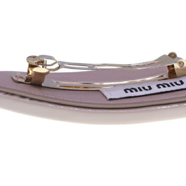Miu Miu Miu Barrette 5IF092 Beige Patent Leather Hair Clip Accessory for Women MIU