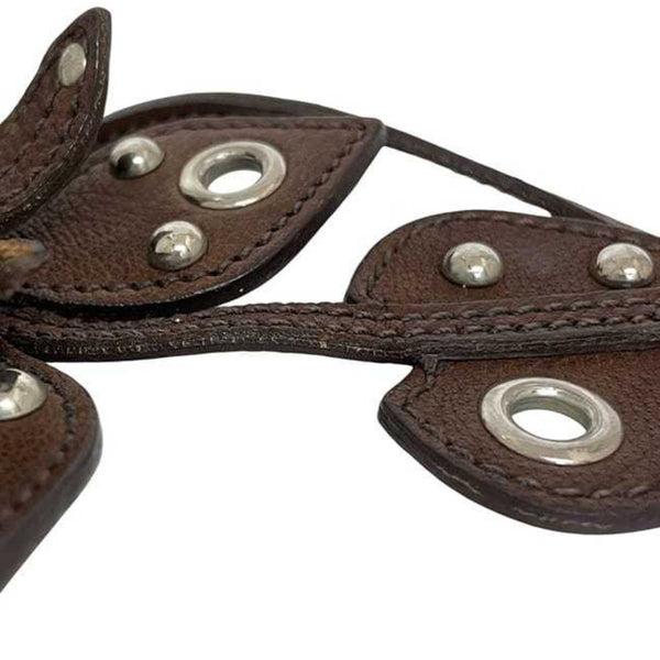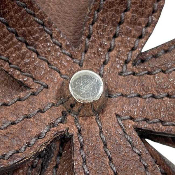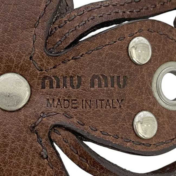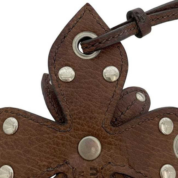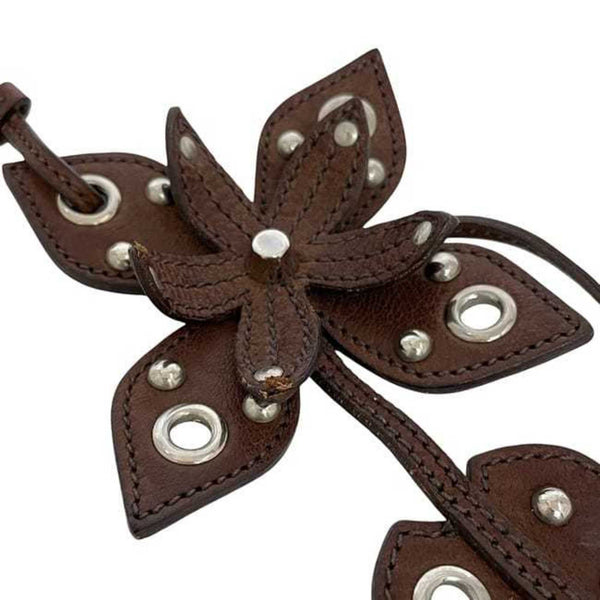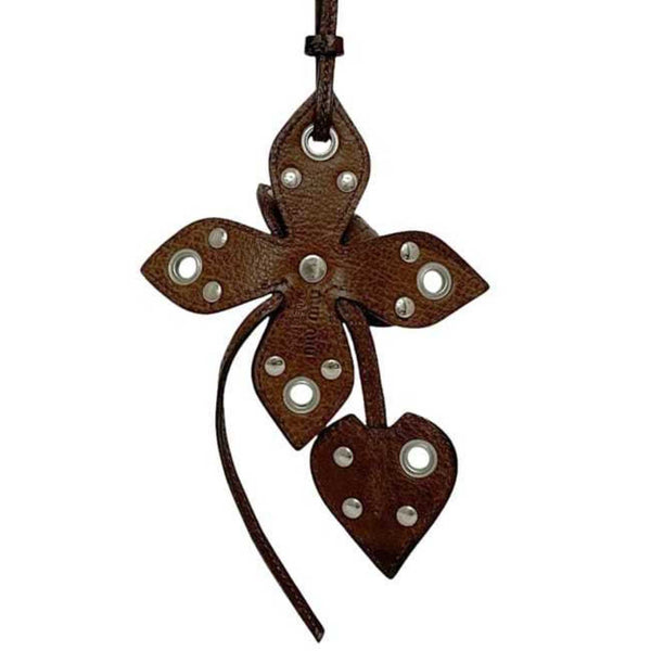 Miu Miu Miu Charm ec-24114 Brown Leather Flower Studs Men\'s Women\'s Keychain Motif Heart Engraved