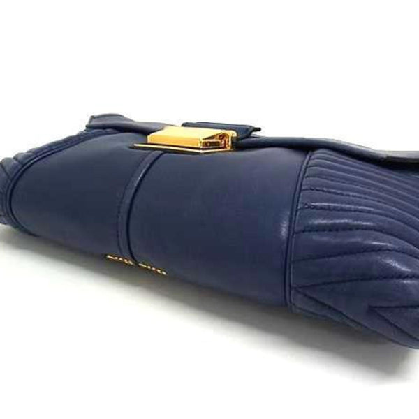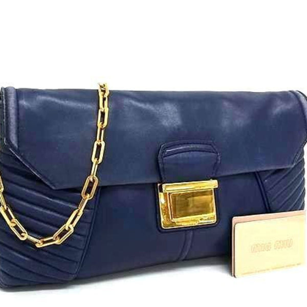 Miu Miu Miu Clutch Bag, Nappa Biker, RP383B, Blue Leather, Women\'s Shoulder Bag with Chain