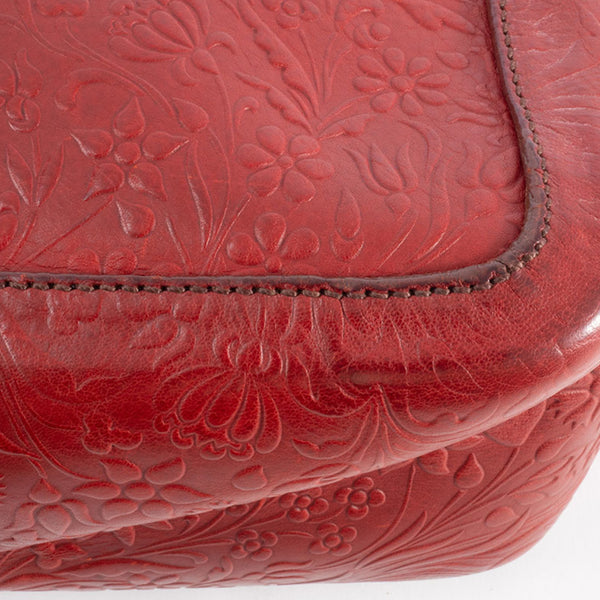 Miu Miu Miu Flower Embossed Handbag RR0687, Red Leather, Women\'s, MIU