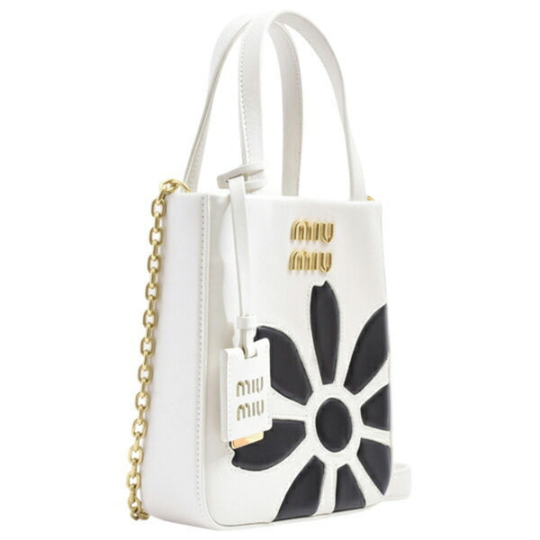 Miu Miu Miu Women\'s Flower Motif Handbag Shoulder Bag in White Calfskin