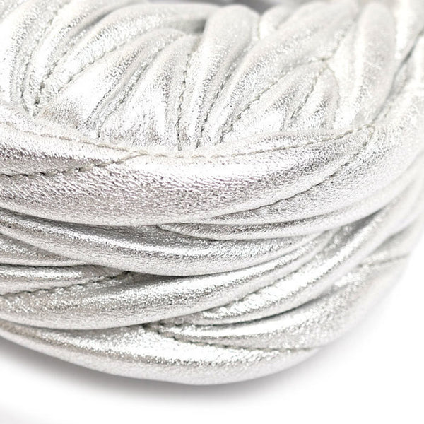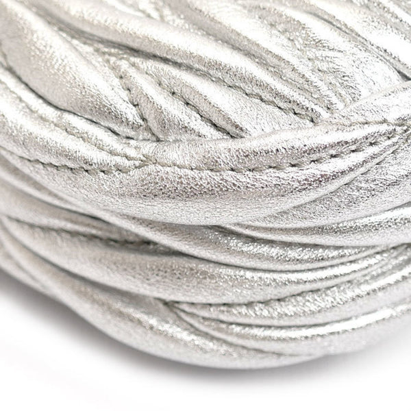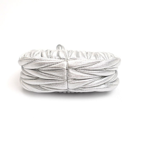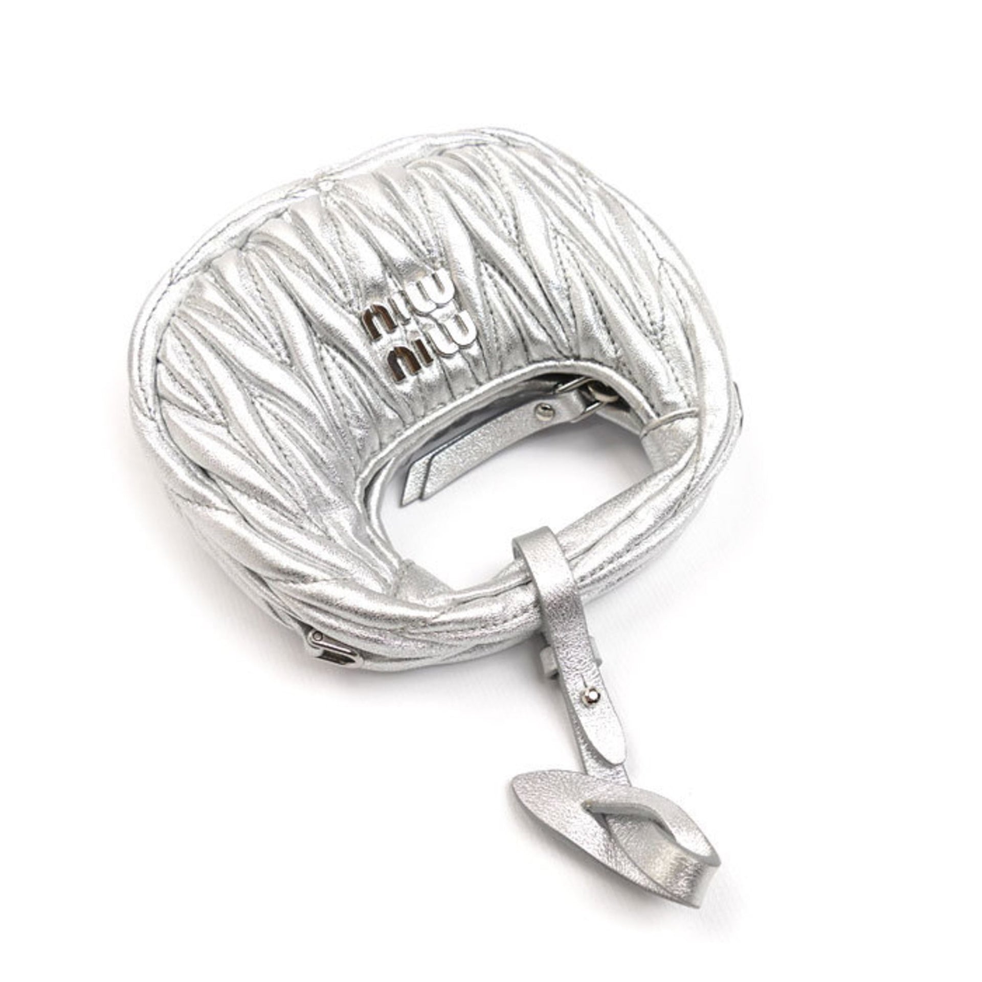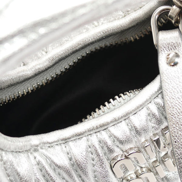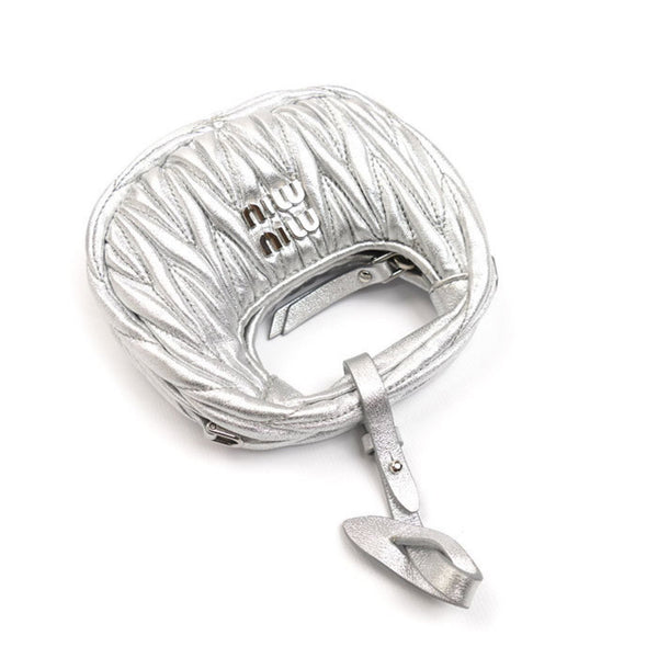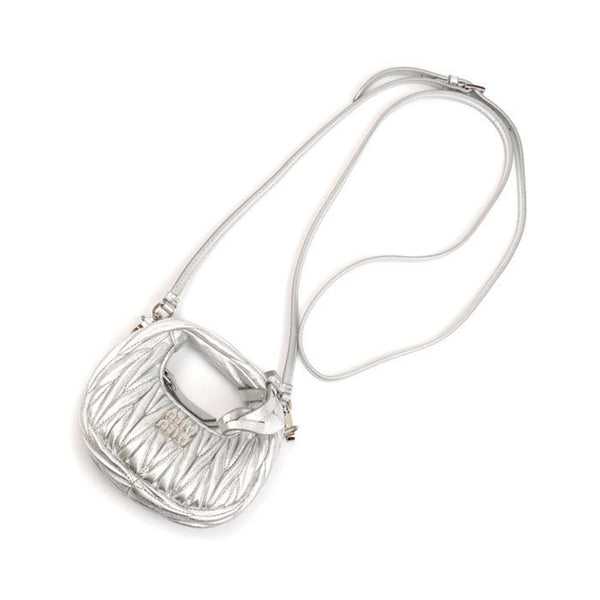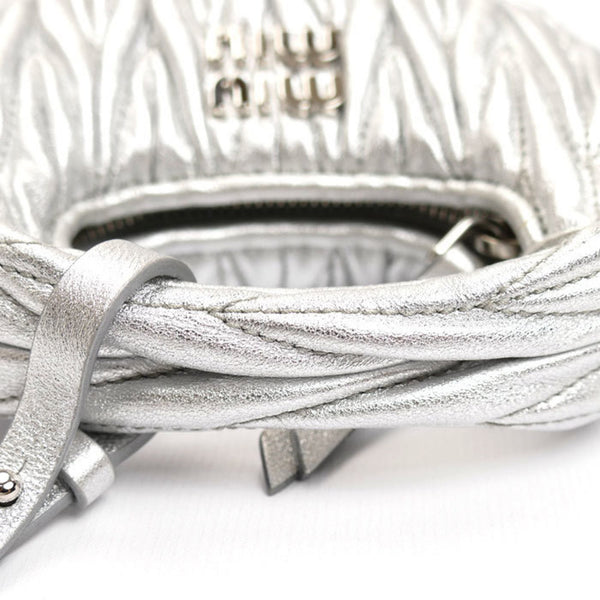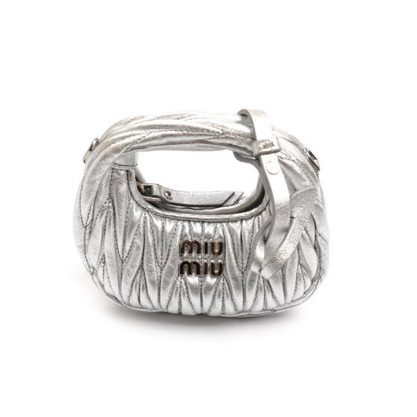 MIUMIU Miu Wonder Matelasse Leather Hobo Bag Pouch Silver 5NR019 Shoulder Charm Women\'s