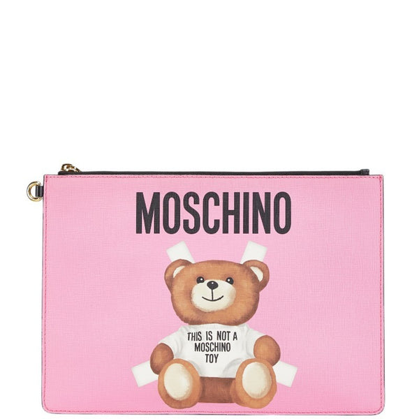 Moschino Bear Print Clutch Bag in Pink Leather for Women