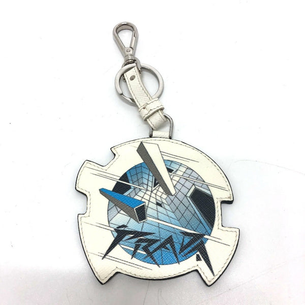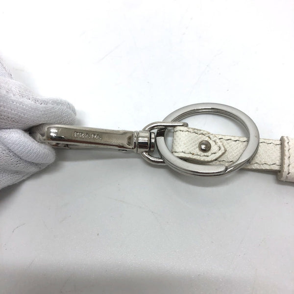PRADA 2TL296 Key Ring Charm Fashion Accessory Keychain Saffiano Leather Women\'s White