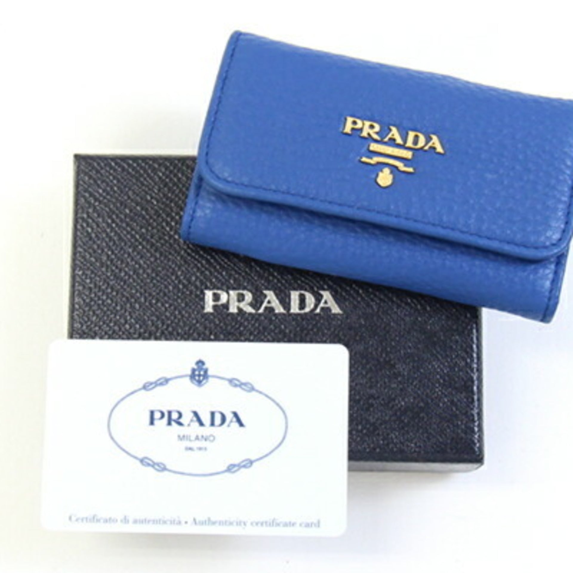 PRADA 6-Key Case 1PG222 Blue Leather Women\'s