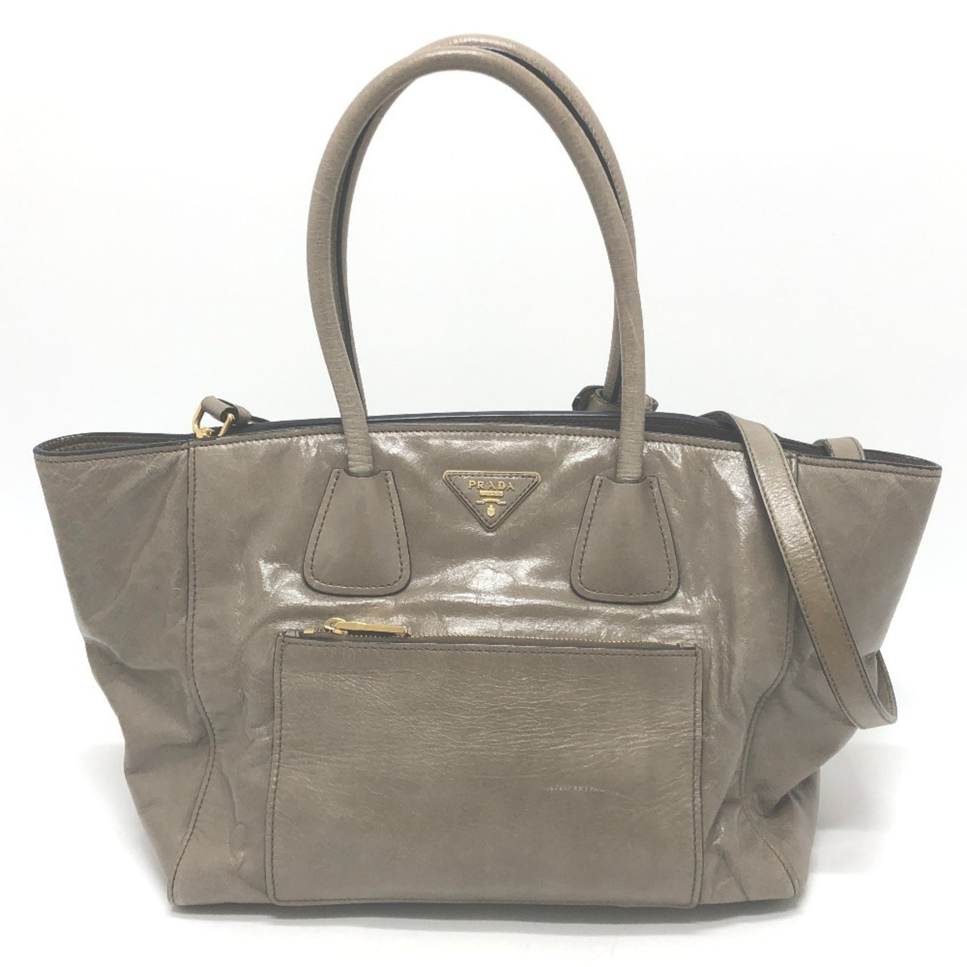 PRADA BN2626 Logo Bag 2WAY Handbag Shoulder Crossbody Triangle Plate Tote Leather Women\'s Brown
