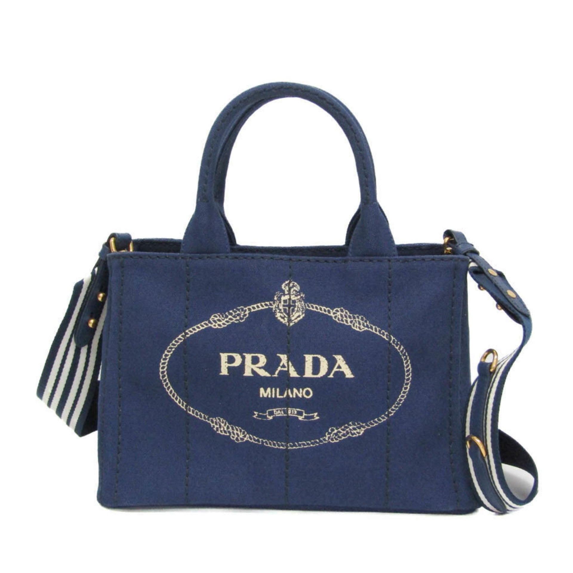 Prada Canapa S Size 1BG439 Women\'s Canvas Shoulder Bag,Tote Bag Blue