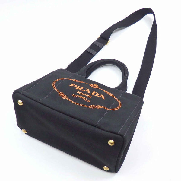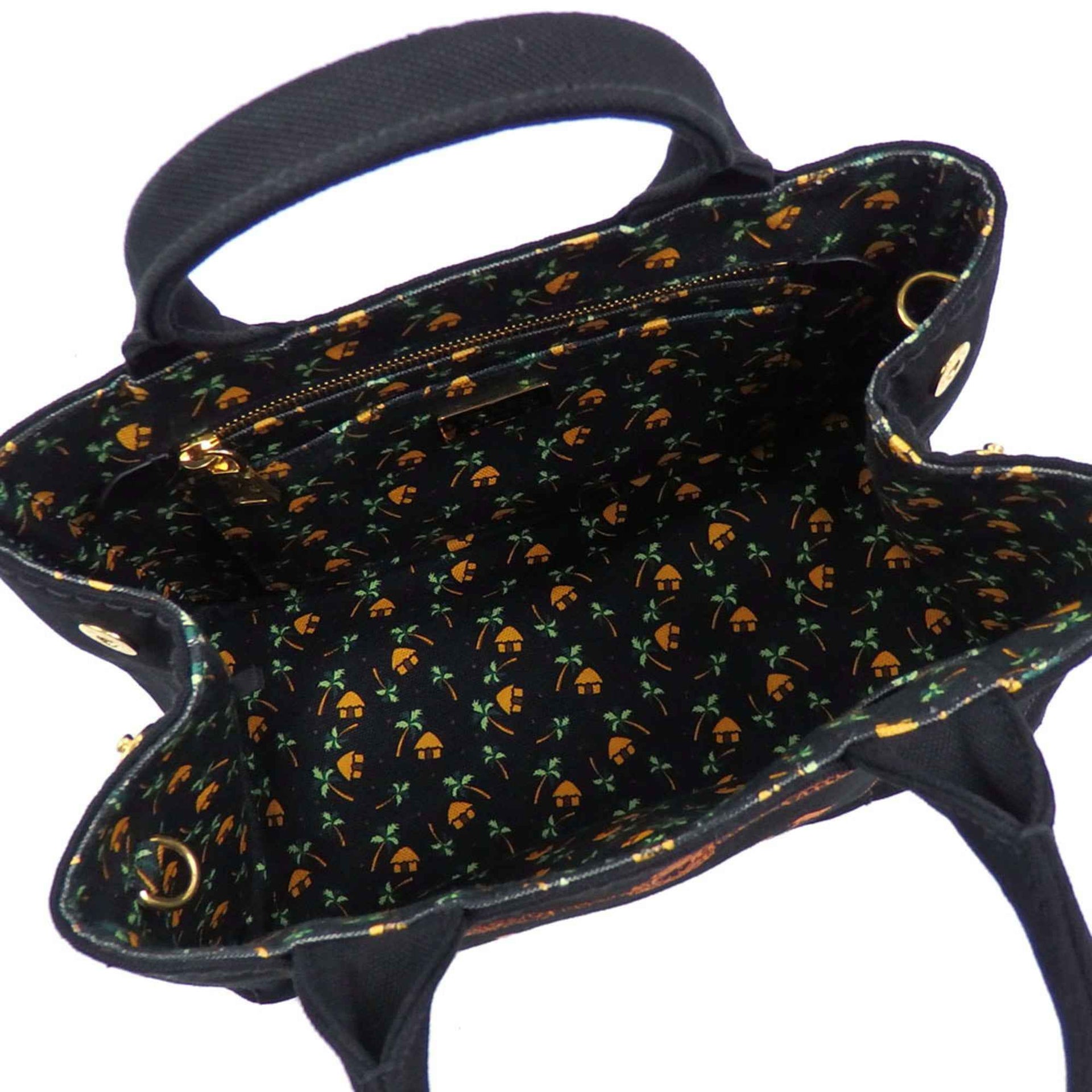 Prada Canapa Tote Bag for Women, Nero Arancia Canvas, 1BG439, Palm Tree Pattern, Black