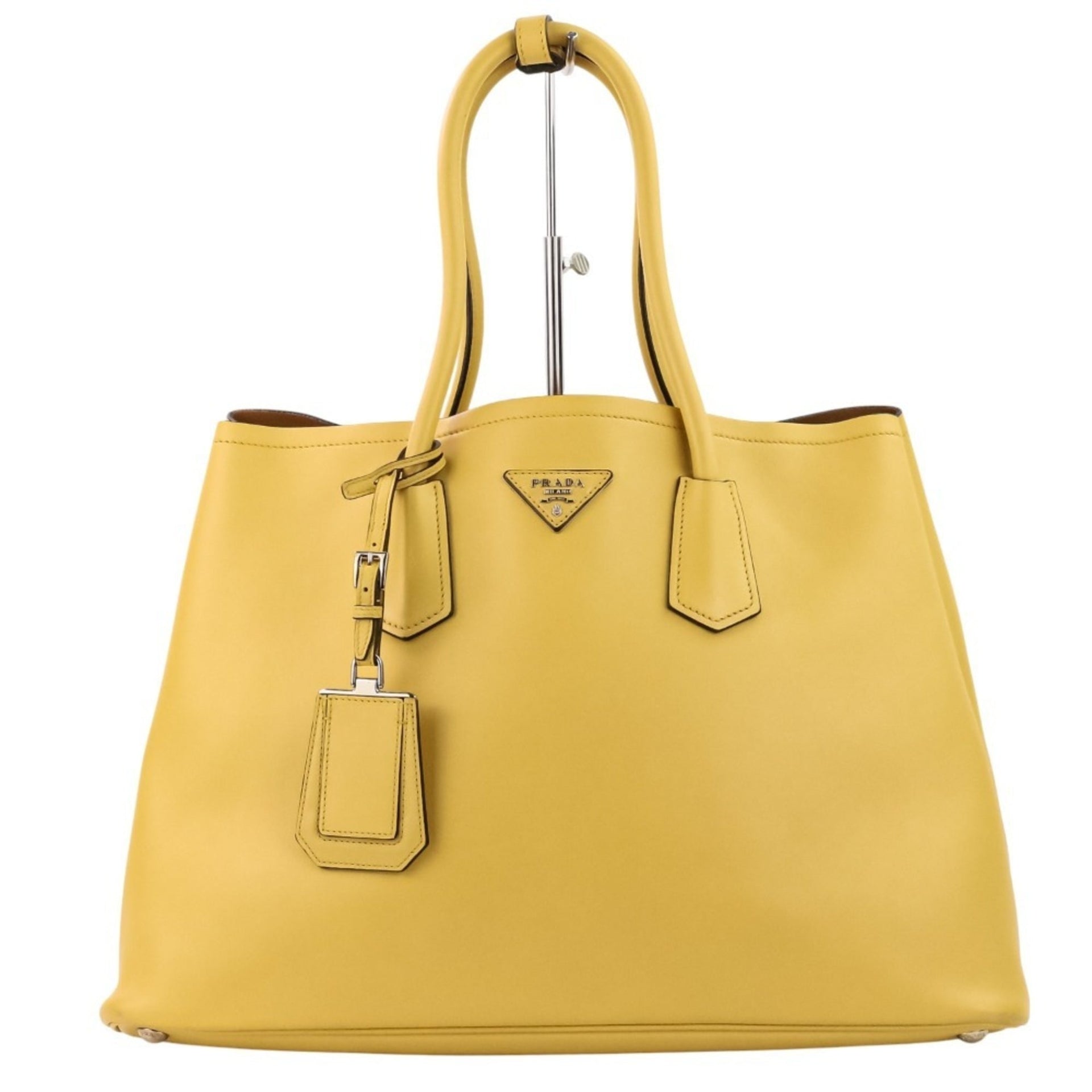PRADA Citycalf Leather Tote Bag BR5070 Yellow Mustard Women\'s