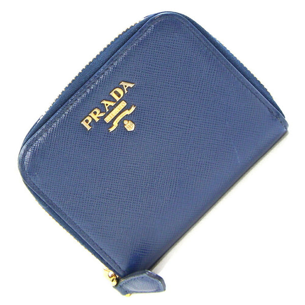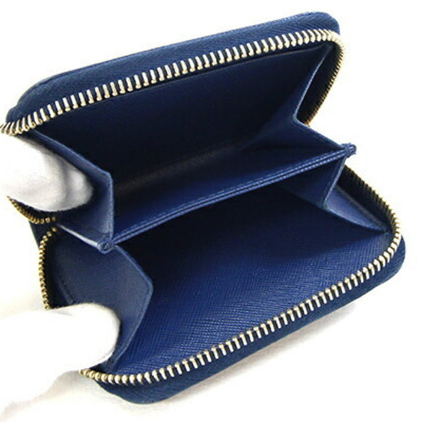 Prada Coin Case 1M0268 Blue Leather Purse Mini Wallet Round Women\'s PRADA