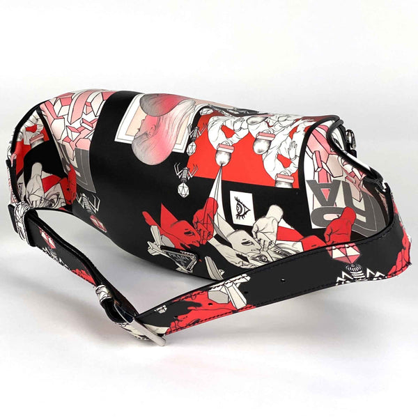 Prada Comic Print Body Bag, Waist Logo, Leather, Nero (Black) Multicolor, 2VL006, Women\'s