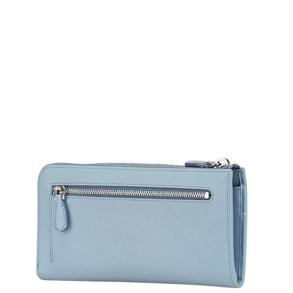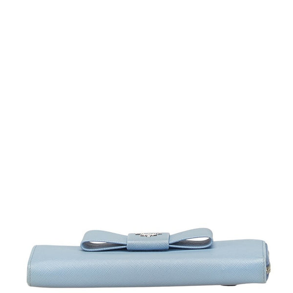 Prada Fiocco Ribbon Motif L-Zip Long Wallet 1ML183 Light Blue Saffiano Leather Women\'s PRADA