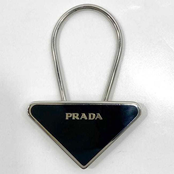 Prada Key Ring ec-23668 Black and Silver Metal M715 PRADA Holder Plate Box Women\'s Men\'s Bag Charm