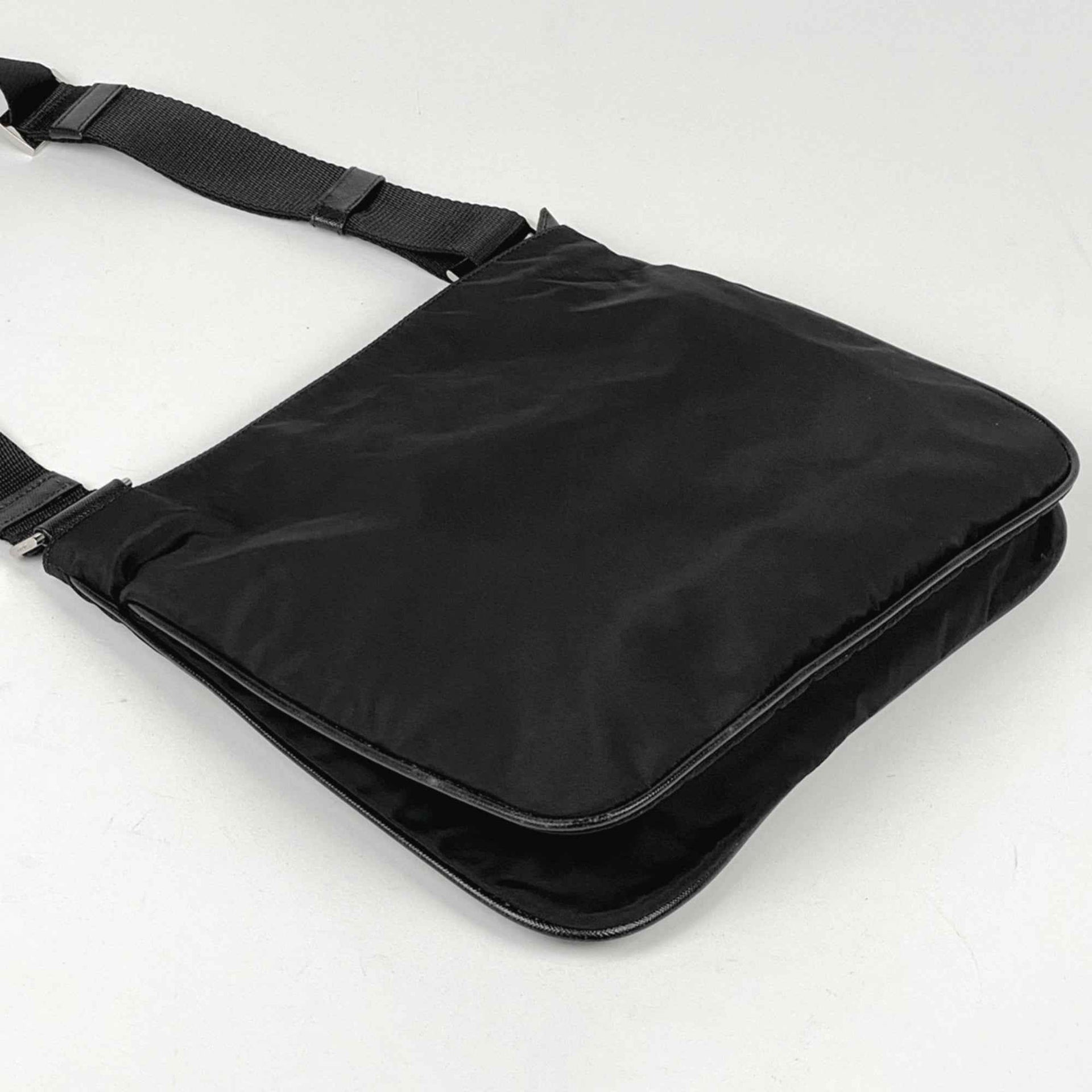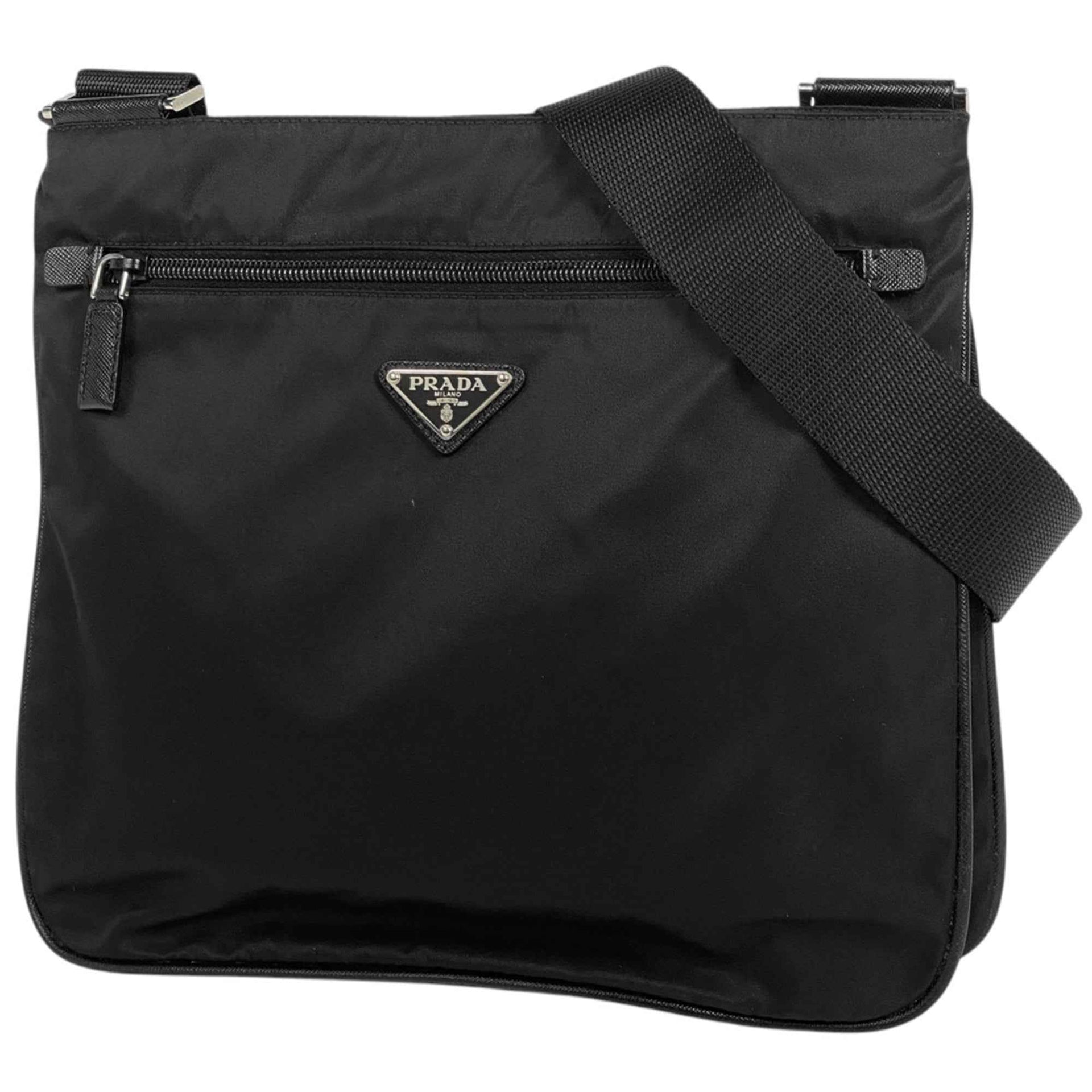 Prada Logo Plate Shoulder Bag, Crossbody Tessuto Nylon, Nero (Black), VA0563, Women\'s